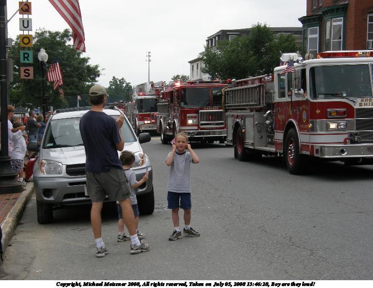 Picture #40: Boy are they loud! 768x592, 87,242 bytes (86K), (html file) Copyright, Michael Meissner 2008, All rights reserved Olympus SP-550UZ camera f/5.0, ISO 50, 1/160 sec, 12.6mm, auto mode, HQ, matrix metering 35mm equivalent focal length 76.0mm Taken by Michael Meissner on July 05, 2008 13:46:28 Last modified on July 09, 2008 at 12:33 |