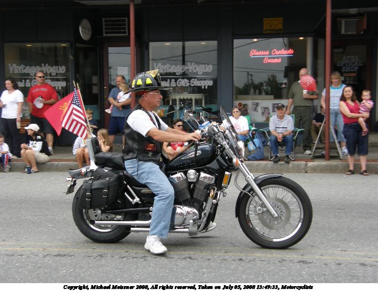 Picture #47: Motorcyclists #4 768x592, 92,198 bytes (91K), (html file) Copyright, Michael Meissner 2008, All rights reserved Olympus SP-550UZ camera f/3.5, ISO 50, 1/160 sec, 10.3mm, auto mode, HQ, matrix metering 35mm equivalent focal length 62.0mm Taken by Michael Meissner on July 05, 2008 13:49:33 Last modified on July 09, 2008 at 12:35 |
