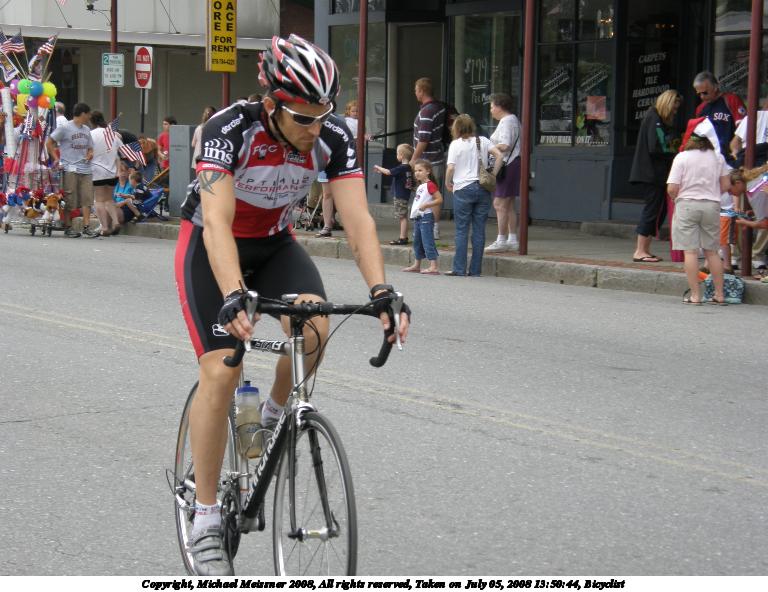 Picture #49: Bicyclist 768x592, 88,115 bytes (87K), (html file) Copyright, Michael Meissner 2008, All rights reserved Olympus SP-550UZ camera f/4.1, ISO 50, 1/125 sec, 18.6mm, auto mode, HQ, matrix metering 35mm equivalent focal length 112.0mm Taken by Michael Meissner on July 05, 2008 13:50:44 Last modified on July 09, 2008 at 12:36 |