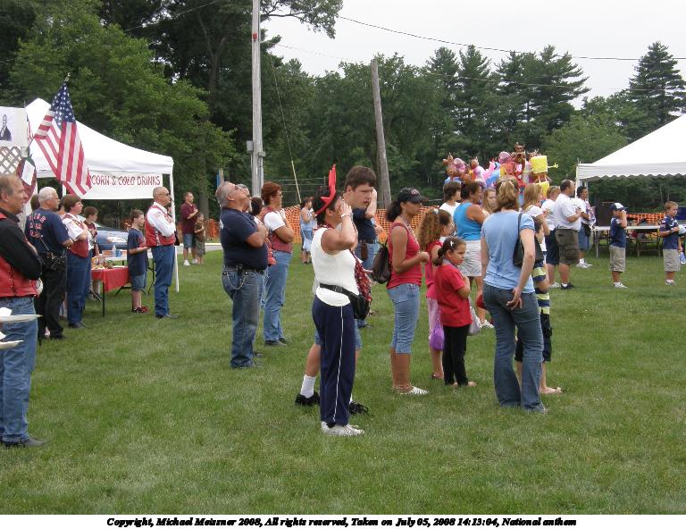 Picture #52: National anthem 768x592, 112,437 bytes (110K), (html file) Copyright, Michael Meissner 2008, All rights reserved Olympus SP-550UZ camera f/5.0, ISO 50, 1/125 sec, 9.8mm, auto mode, HQ, matrix metering 35mm equivalent focal length 59.0mm Taken by Michael Meissner on July 05, 2008 14:13:04 Last modified on July 09, 2008 at 12:39 |