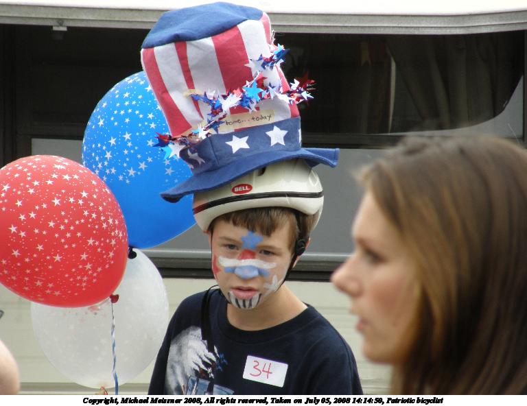 Picture #54: Patriotic bicyclist 768x592, 69,996 bytes (69K), (html file) Copyright, Michael Meissner 2008, All rights reserved Olympus SP-550UZ camera f/4.2, ISO 100, 1/400 sec, 67.8mm, auto mode, HQ, matrix metering 35mm equivalent focal length 407.0mm Taken by Michael Meissner on July 05, 2008 14:14:50 Last modified on July 09, 2008 at 12:40 |