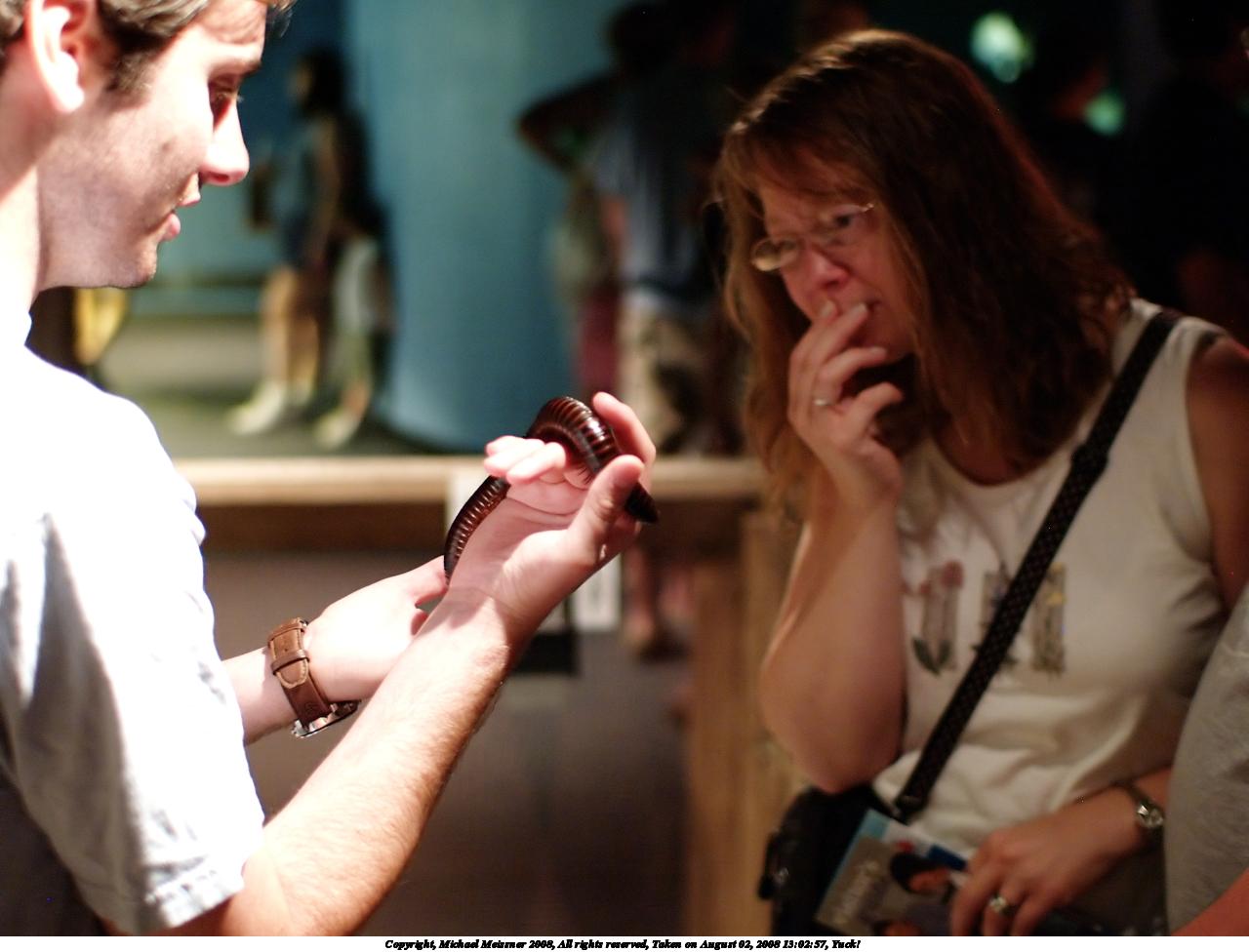 Picture #3: Yuck! 1280x976, 104,534 bytes (103K), (html file) Copyright, Michael Meissner 2008, All rights reserved Olympus E-1 camera with Sigma 30mm f/1.4 lens f/1.4, ISO 800, 1/50 sec, 30.0mm, auto mode, SHQ, matrix metering, +2 contrast, +2 sharpening 35mm equivalent focal length 60.0mm Programs used: gimp, neatimage Taken by Michael Meissner on August 02, 2008 13:02:57 Last modified on September 21, 2008 at 16:46 |