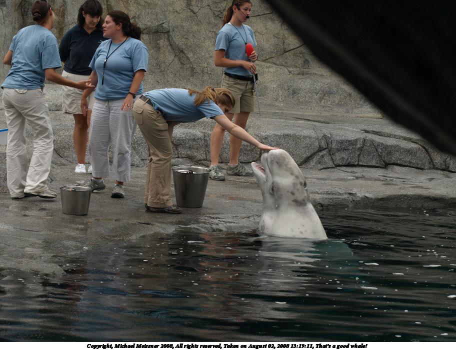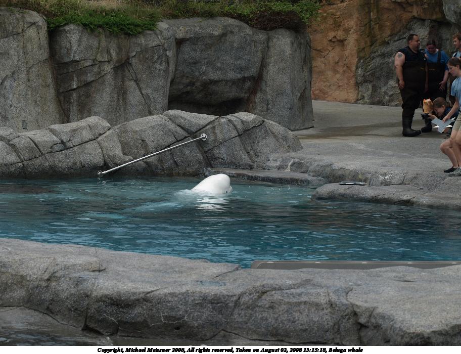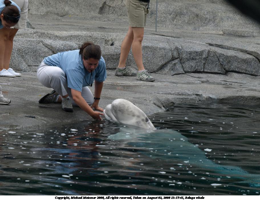 Picture #6: Beluga whale #4 912x700, 129,598 bytes (127K), (html file) Copyright, Michael Meissner 2008, All rights reserved Olympus E-510 camera with Olympus 50-200mm f/2.8-3.5 lens and Olympus EC-14 (1.4x) f/8.0, ISO 400, 1/160 sec, 130.0mm, aperture priority, natural color, SHQ, matrix metering, -1 sharpening, manual focus, IS1 (All Direction Shake IS), noise filter low 35mm equivalent focal length 260.0mm, EC-14 Taken by Michael Meissner on August 02, 2008 13:17:41 Last modified on September 21, 2008 at 17:00 |