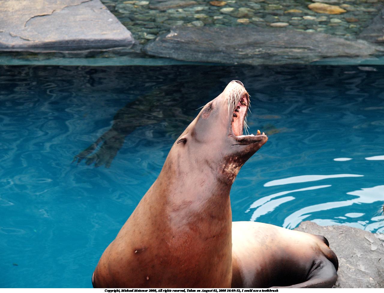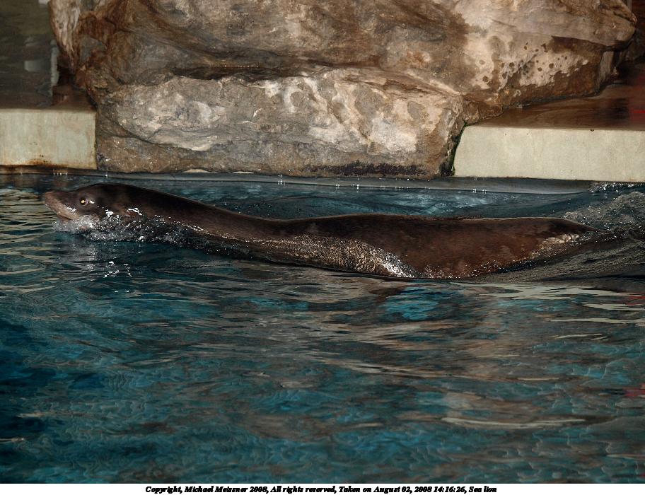 Picture #4: Sea lion #2 912x700, 142,368 bytes (140K), (html file) Copyright, Michael Meissner 2008, All rights reserved Olympus E-510 camera with Olympus 50-200mm f/2.8-3.5 lens f/4.0, ISO 400, FL-50 flash, 1/160 sec, 79.0mm, aperture priority, natural color, SHQ, matrix metering, -1 sharpening, manual focus, IS1 (All Direction Shake IS), noise filter low 35mm equivalent focal length 158.0mm Extra equipment used: FL-50 flash Programs used: gimp Taken by Michael Meissner on August 02, 2008 14:06:00 Last modified on September 21, 2008 at 20:01 |
