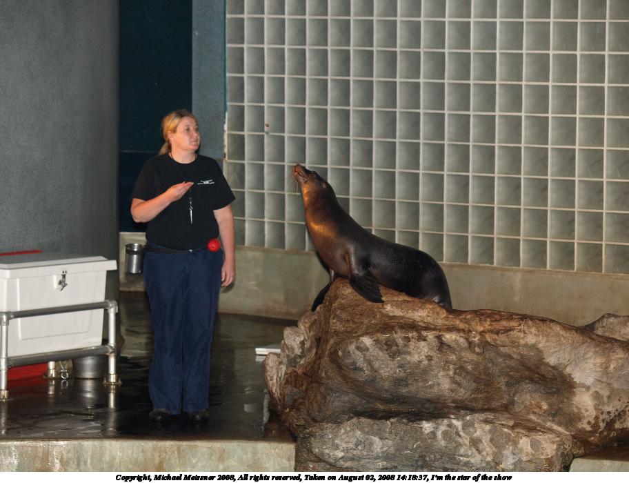 Picture #16: I'm the star of the show 912x700, 113,846 bytes (112K), (html file) Copyright, Michael Meissner 2008, All rights reserved Olympus E-510 camera with Olympus 50-200mm f/2.8-3.5 lens f/4.0, ISO 400, FL-50 flash, 1/180 sec, 92.0mm, aperture priority, natural color, SHQ, matrix metering, -1 sharpening, manual focus, IS1 (All Direction Shake IS), noise filter low 35mm equivalent focal length 184.0mm Extra equipment used: FL-50 flash Programs used: gimp Taken by Michael Meissner on August 02, 2008 14:18:37 Last modified on September 21, 2008 at 20:34 |