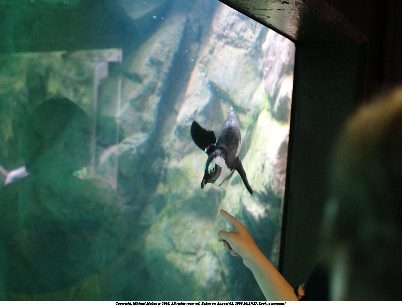 Picture #5: Look, a penguin! 1280x976, 109,904 bytes (108K), (html file) Copyright, Michael Meissner 2008, All rights reserved Olympus E-1 camera with Sigma 30mm f/1.4 lens f/1.6, ISO 400, 1/80 sec, 30.0mm, auto mode, SHQ, matrix metering, +2 contrast, +2 sharpening 35mm equivalent focal length 60.0mm Programs used: gimp Taken by Michael Meissner on August 02, 2008 16:27:27 Last modified on September 25, 2008 at 22:44 |