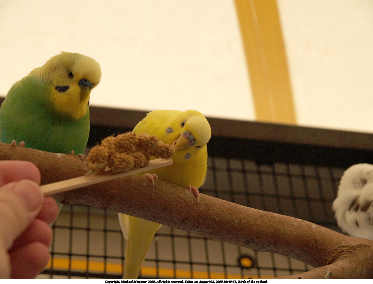 Picture #3: Birds of the outback #2 1280x976, 212,773 bytes (208K), (html file) Copyright, Michael Meissner 2008, All rights reserved Olympus E-1 camera with Olympus 14-54mm f/2.8-3.5 lens f/4.0, ISO 400, 1/160 sec, 51.0mm, auto mode, SHQ, matrix metering, +2 contrast, +2 sharpening 35mm equivalent focal length 102.0mm Programs used: gimp Taken by Michael Meissner on August 02, 2008 16:39:38 Last modified on September 26, 2008 at 08:16 |