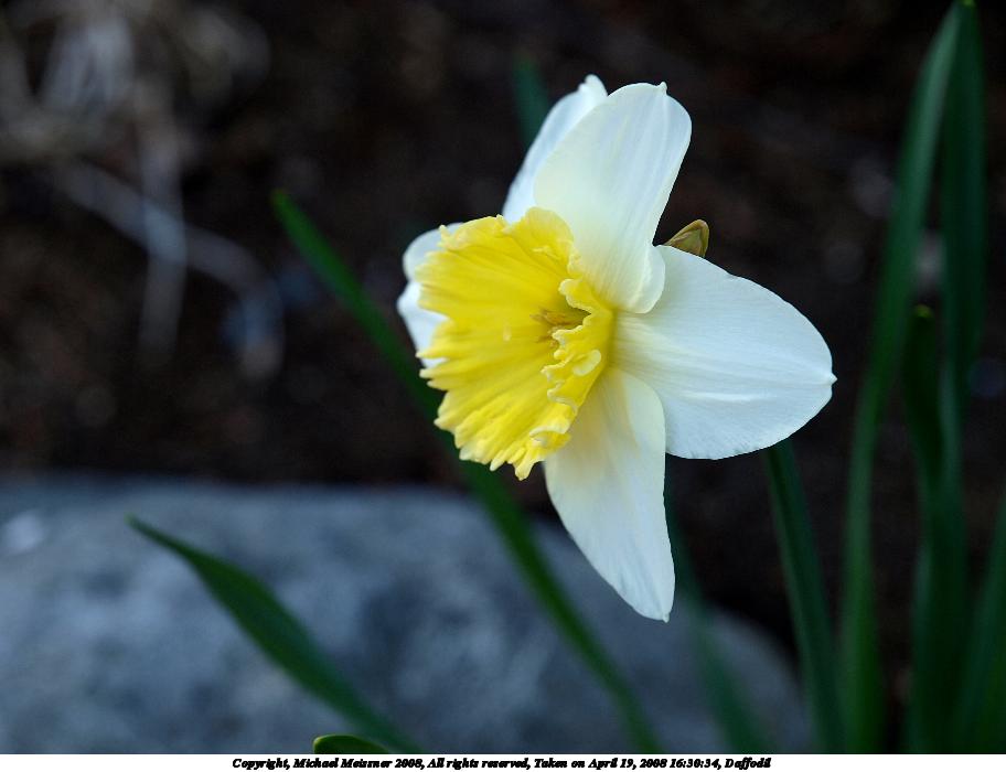 Picture #63: Daffodil #3 912x700, 88,828 bytes (87K), (html file) Copyright, Michael Meissner 2008, All rights reserved Olympus E-3 camera with Olympus 12-60mm SWD f/2.8-4.0 lens f/5.0, ISO 100, 1/200 sec, 60.0mm, auto mode, natural color, SHQ, matrix metering, auto + manual focus, IS1 (All Direction Shake IS) 35mm equivalent focal length 120.0mm Programs used: gimp Taken by Michael Meissner on April 19, 2008 16:31:09 Last modified on June 25, 2008 at 22:55 |
