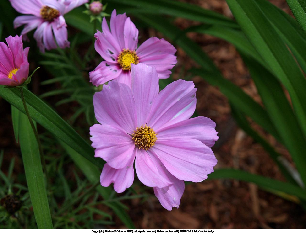 Picture #7: Painted daisies 1280x976, 331,533 bytes (324K), (html file) Copyright, Michael Meissner 2008, All rights reserved Olympus E-1 camera with Olympus 50mm f/2.0 lens f/8.0, ISO 100, 1/400 sec, 50.0mm, aperture priority, SHQ, matrix metering, +2 sharpening 35mm equivalent focal length 100.0mm Programs used: gimp Taken by Michael Meissner on June 14, 2008 11:55:57 Last modified on July 14, 2008 at 11:33 This picture is one of my favorites. |