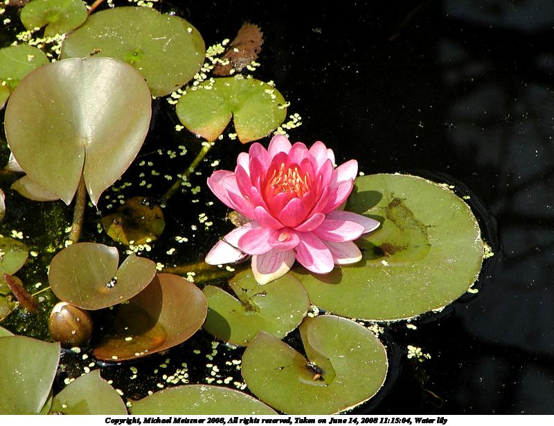 Picture #16: Water lily #5 1280x976, 132,551 bytes (130K), (html file) Copyright, Michael Meissner 2008, All rights reserved Olympus E-1 camera with Olympus 50mm f/2.0 lens f/5.6, ISO 100, 1/160 sec, 50.0mm, aperture priority, SHQ, matrix metering, +2 sharpening 35mm equivalent focal length 100.0mm Taken by Michael Meissner on June 14, 2008 11:49:48 Last modified on July 11, 2008 at 10:09 |
