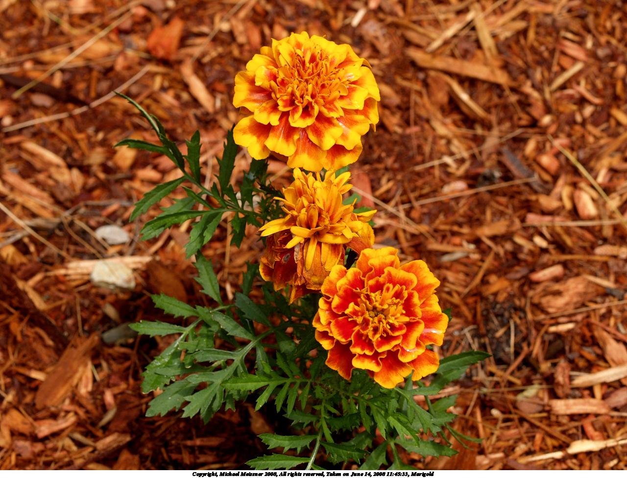 Picture #41: Marigold #3 1280x976, 98,845 bytes (97K), (html file) Copyright, Michael Meissner 2008, All rights reserved Olympus E-1 camera with Olympus 50mm f/2.0 lens f/2.8, ISO 100, 1/200 sec, 50.0mm, auto mode, SHQ, matrix metering, +2 sharpening 35mm equivalent focal length 100.0mm Programs used: gimp Taken by Michael Meissner on June 07, 2008 18:39:24 Last modified on June 25, 2008 at 23:39 This picture is one of my favorites. |