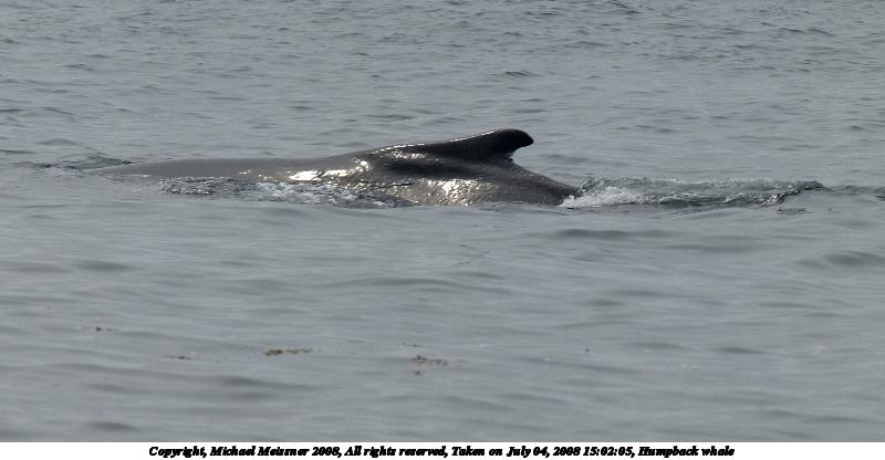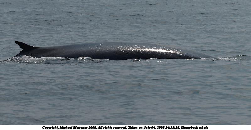 Picture #19: Humpback whale 800x416, 70,720 bytes (70K), (html file) Copyright, Michael Meissner 2008, All rights reserved Olympus E-510 camera with Olympus 50-200mm f/2.8-3.5 lens and Olympus EC-14 (1.4x) f/7.1, ISO 200, 1/640 sec, 95.0mm, auto mode, natural color, SHQ, matrix metering, -1 sharpening, IS1 (All Direction Shake IS), noise filter low 35mm equivalent focal length 190.0mm, EC-14 Programs used: gimp Taken by Michael Meissner on July 04, 2008 14:35:28 Last modified on July 05, 2008 at 16:17 |