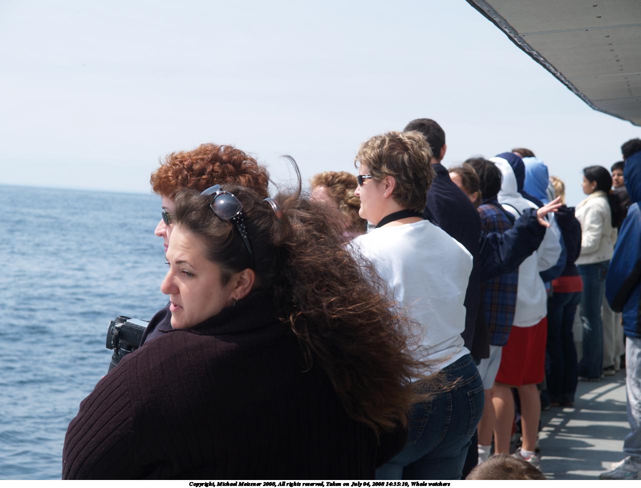 Picture #29: Whale watchers #2 1000x766, 90,823 bytes (89K), (html file) Copyright, Michael Meissner 2008, All rights reserved Olympus E-1 camera with Olympus 14-54mm f/2.8-3.5 lens f/9.0, ISO 100, 1/400 sec, 25.0mm, auto mode, SHQ, matrix metering, +2 sharpening 35mm equivalent focal length 50.0mm Programs used: gimp Taken by Michael Meissner on July 04, 2008 15:14:08 Last modified on July 05, 2008 at 16:48 |