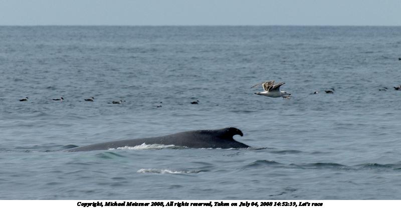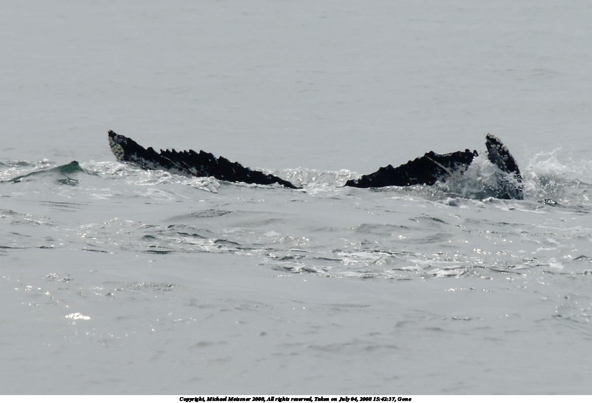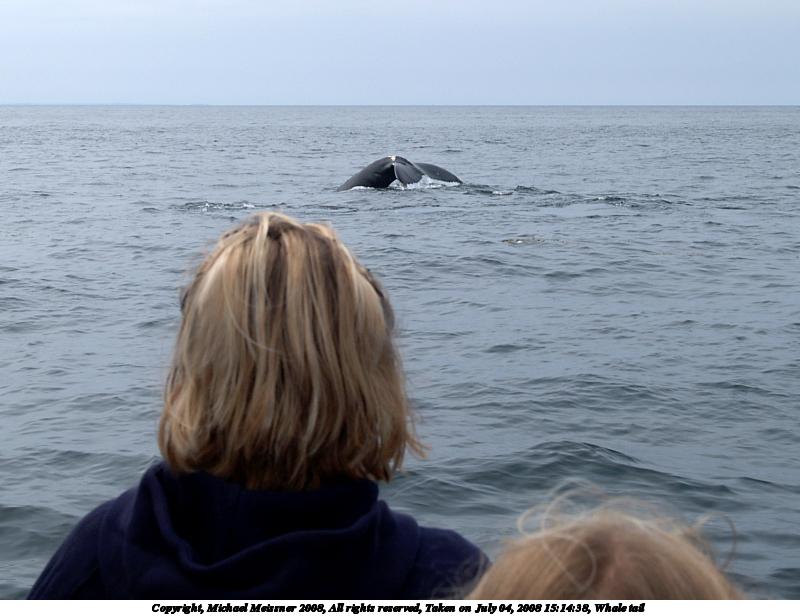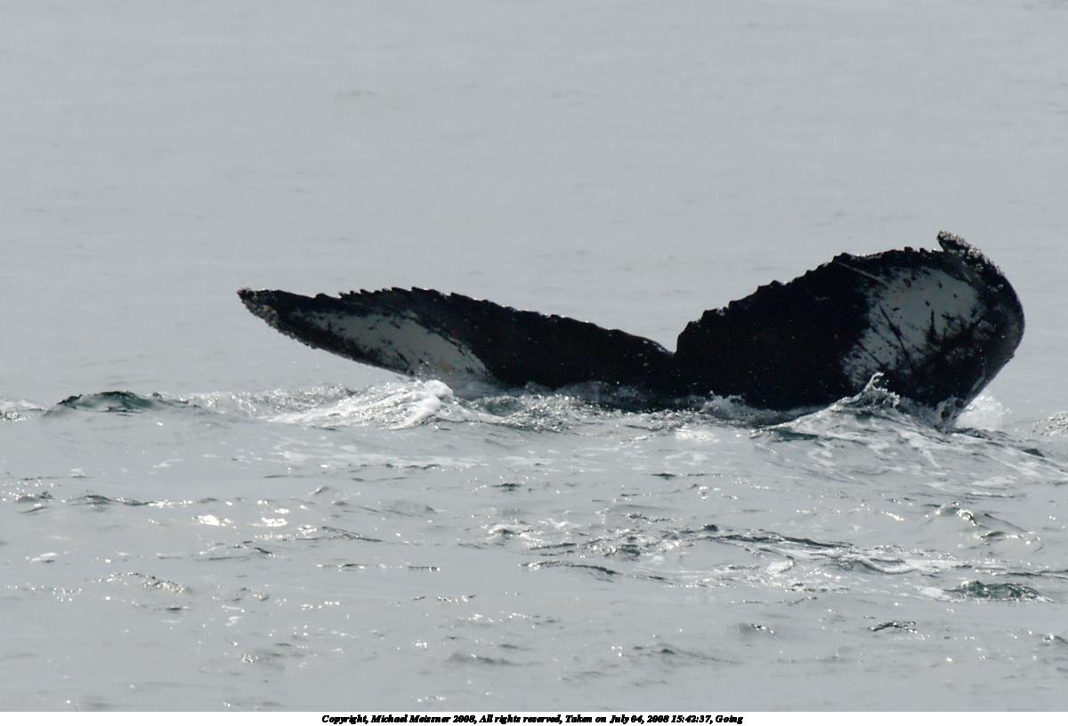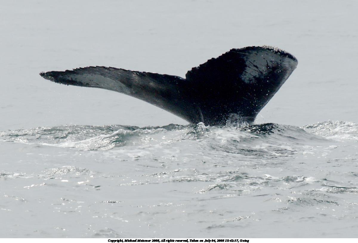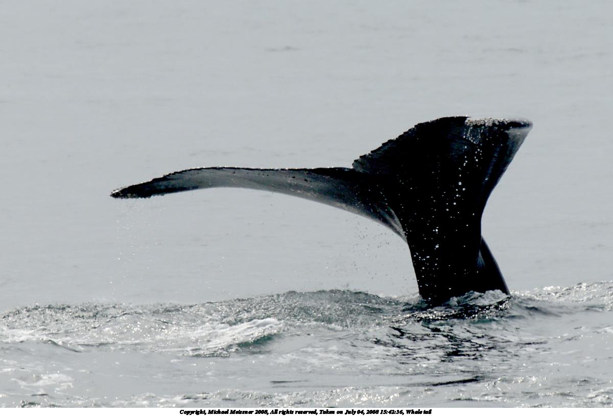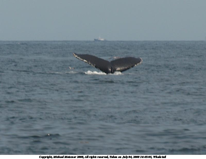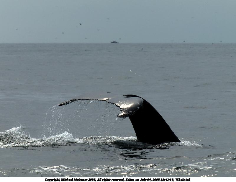Picture #37: Whale tail #5 1200x816, 101,392 bytes (100K), (html file) Copyright, Michael Meissner 2008, All rights reserved Olympus E-510 camera with Olympus 50-200mm f/2.8-3.5 lens and Olympus EC-14 (1.4x) f/7.1, ISO 200, 1/500 sec, 208.0mm, auto mode, natural color, SHQ, matrix metering, -1 sharpening, IS1 (All Direction Shake IS), noise filter low 35mm equivalent focal length 417.0mm, EC-14 Extra equipment used: polarizer Programs used: RAW, gimp Taken by Michael Meissner on July 04, 2008 15:42:36 Last modified on July 06, 2008 at 07:43 This picture is one of my favorites. |