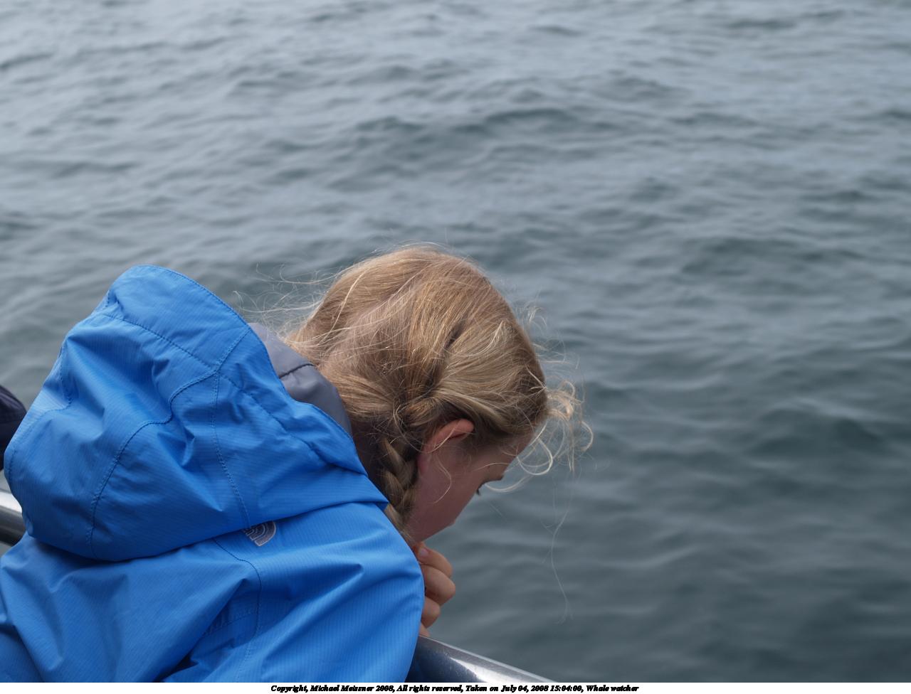 Picture #28: Whale watcher #3 1280x976, 114,756 bytes (113K), (html file) Copyright, Michael Meissner 2008, All rights reserved Olympus E-1 camera with Olympus 14-54mm f/2.8-3.5 lens f/6.3, ISO 100, 1/320 sec, 37.0mm, auto mode, SHQ, matrix metering, +2 sharpening 35mm equivalent focal length 74.0mm Taken by Michael Meissner on July 04, 2008 15:04:00 Last modified on July 05, 2008 at 16:45 |