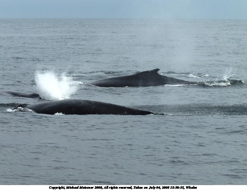 Picture #46: Whales #2 930x716, 106,341 bytes (104K), (html file) Copyright, Michael Meissner 2008, All rights reserved Olympus E-510 camera with Olympus 50-200mm f/2.8-3.5 lens and Olympus EC-14 (1.4x) f/6.3, ISO 200, 1/400 sec, 107.0mm, auto mode, natural color, SHQ, matrix metering, -1 sharpening, IS1 (All Direction Shake IS), noise filter low 35mm equivalent focal length 214.0mm, EC-14 Extra equipment used: polarizer Programs used: RAW, gimp Taken by Michael Meissner on July 04, 2008 15:50:54 Last modified on July 06, 2008 at 08:10 |