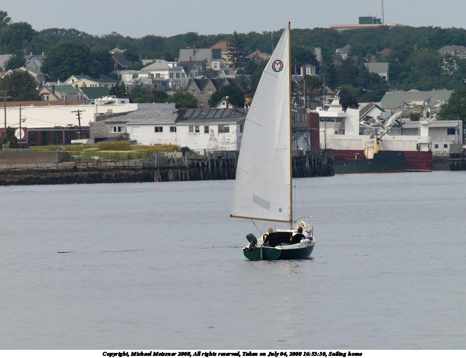 Picture #54: Sailing home 912x700, 103,356 bytes (101K), (html file) Copyright, Michael Meissner 2008, All rights reserved Olympus E-510 camera with Olympus 50-200mm f/2.8-3.5 lens and Olympus EC-14 (1.4x) f/7.1, ISO 400, 1/400 sec, 283.0mm, auto mode, natural color, SHQ, matrix metering, -1 sharpening, IS1 (All Direction Shake IS), noise filter low 35mm equivalent focal length 567.0mm, EC-14 Extra equipment used: polarizer Programs used: gimp Taken by Michael Meissner on July 04, 2008 16:53:30 Last modified on July 07, 2008 at 08:34 |