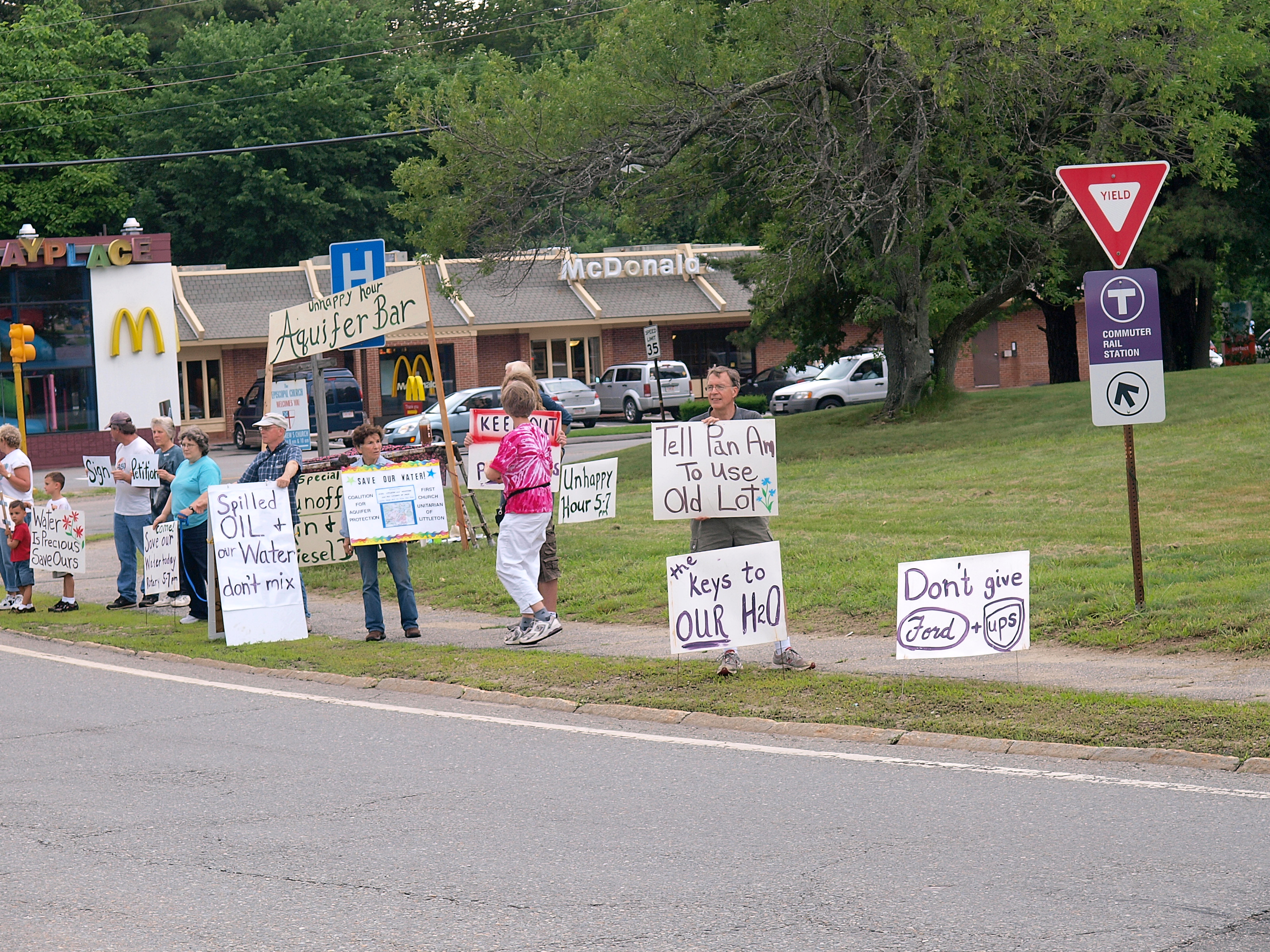 Picture #10: Protest against Pan-am plan to pave over the Ayer aquifer #2 Small: 800x623, 173,183 bytes (170K), (html file) Large: 3200x2400, 8,457,105 bytes (8.1M), (html file) Copyright, Michael Meissner 2009, All rights reserved Olympus E-3 camera with Olympus 14-54mm f/2.8-3.5 lens f/4.5, ISO 100, 1/125 sec, 23.0mm, auto mode, vivid color, auto gradation, matrix metering, auto + manual focus, IS1 (All Direction Shake IS), noise filter low 35mm equivalent focal length 46.0mm Programs used: gimp Taken by Michael Meissner on June 26, 2009 17:32:56 Last modified on July 05, 2009 at 23:54 |