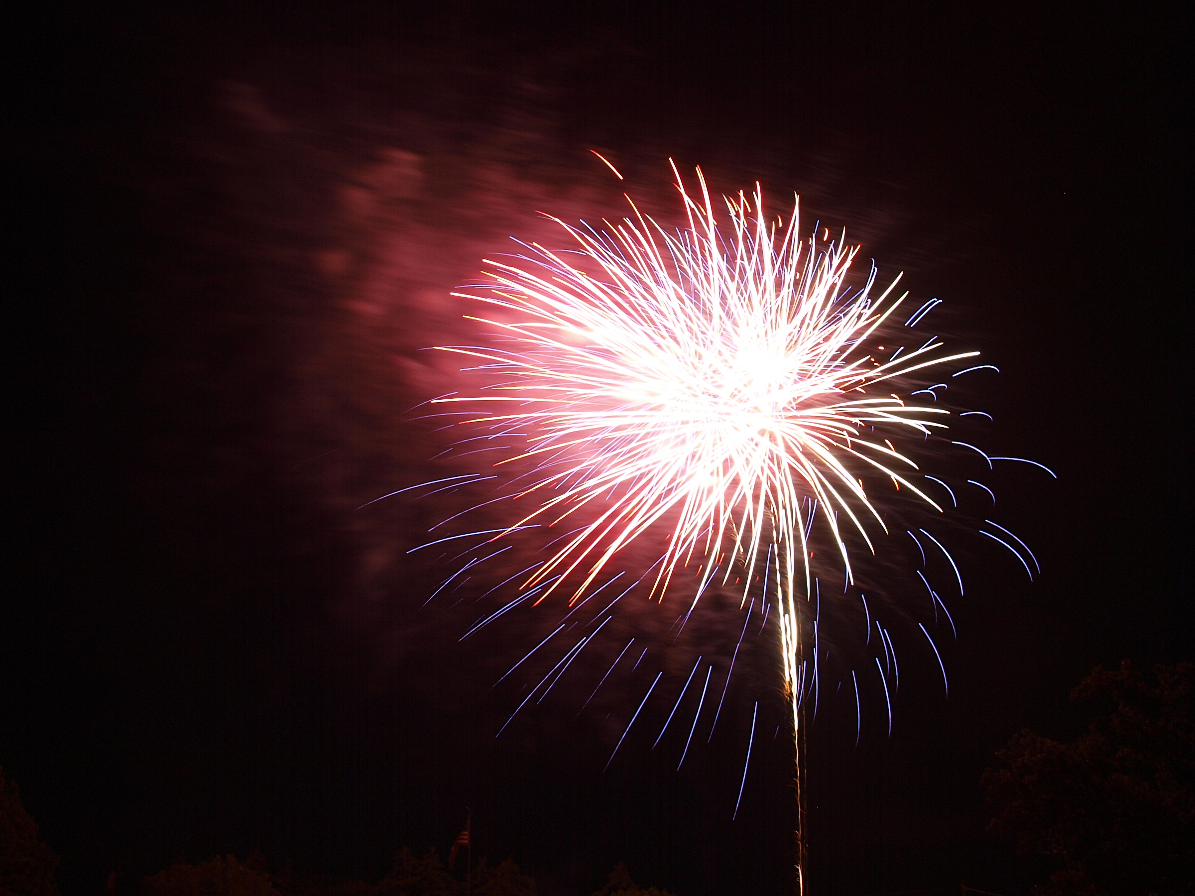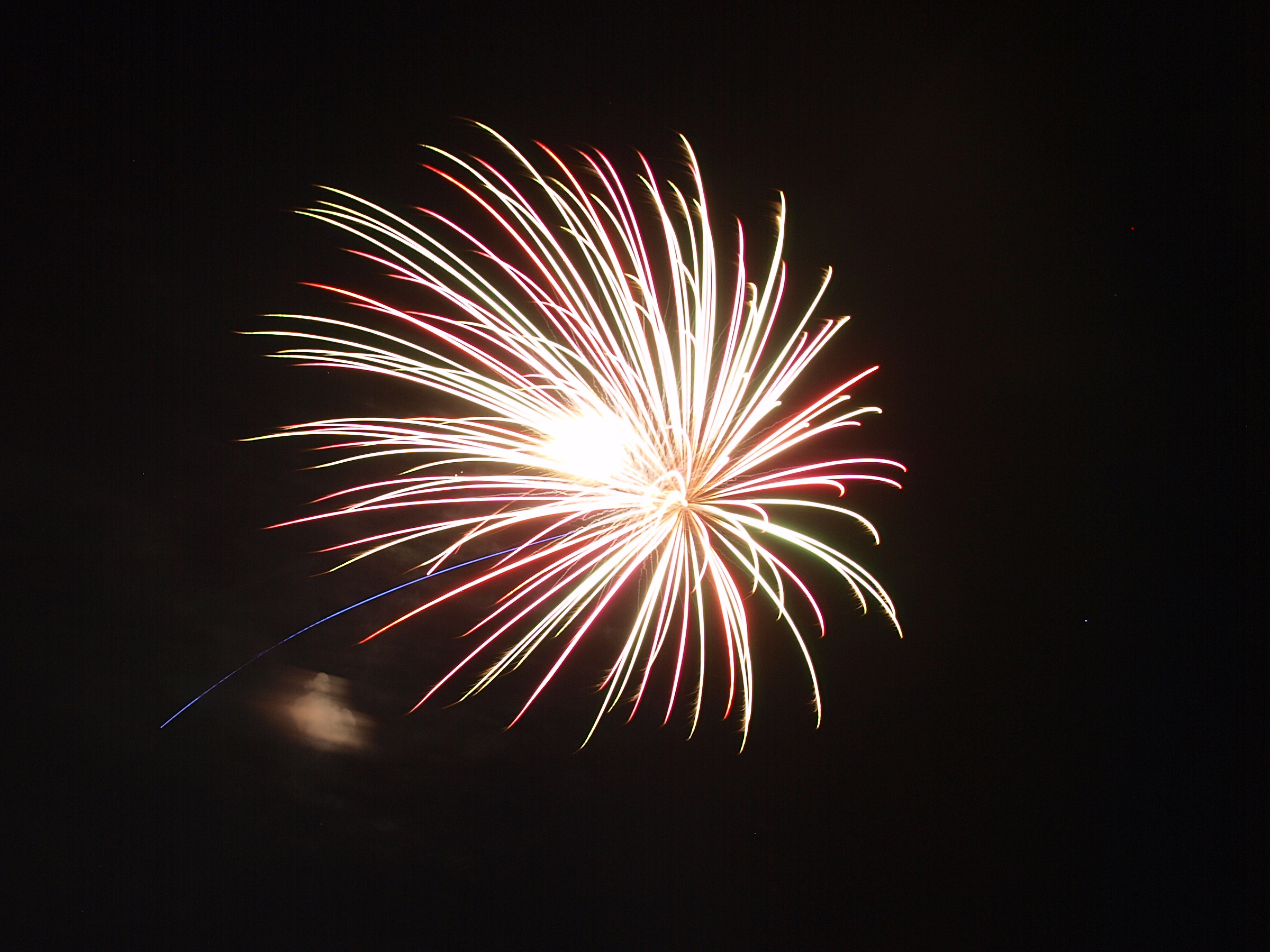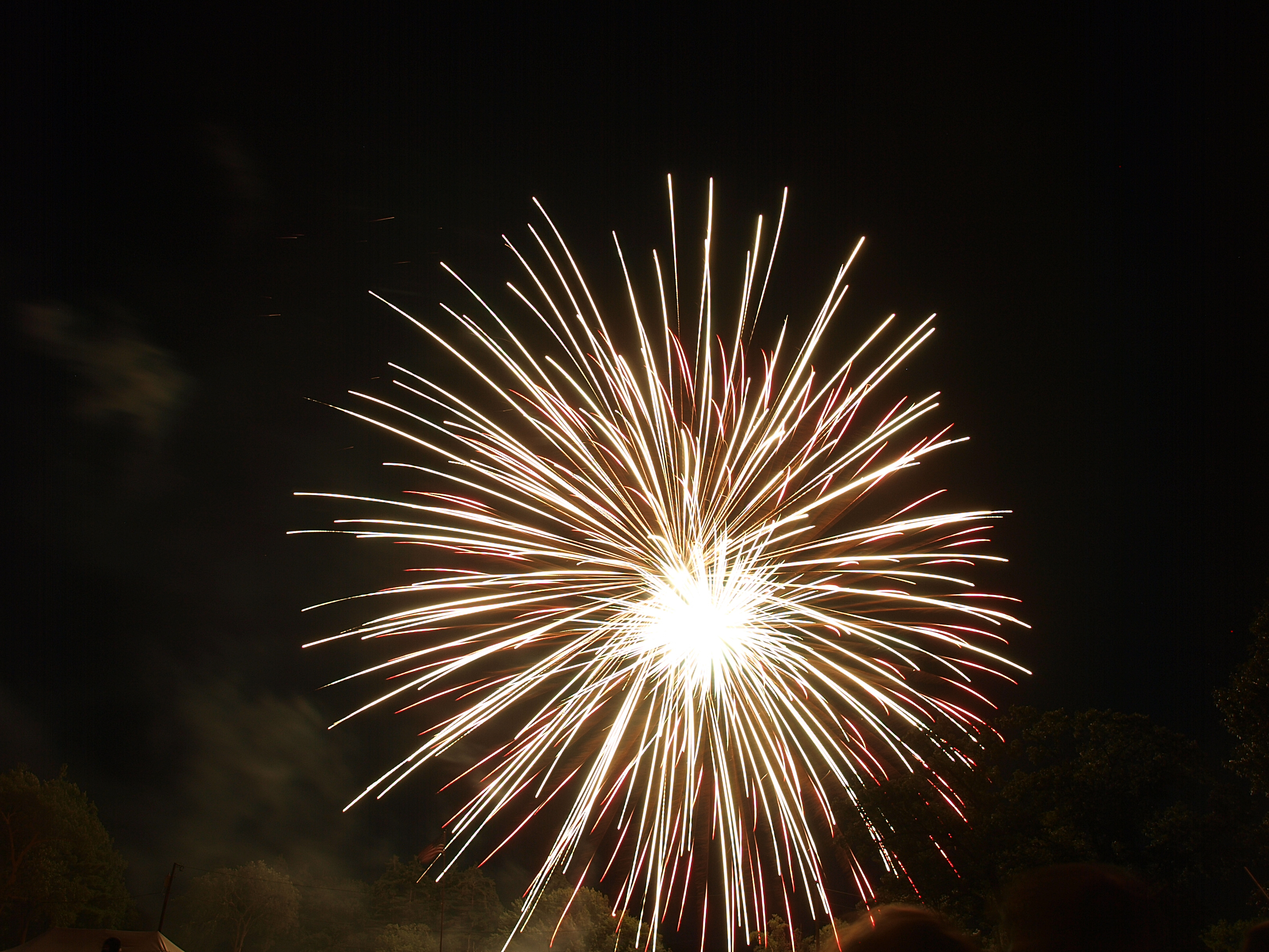 Picture #67: Ayer July 4th fireworks #3 Small: 800x623, 113,000 bytes (111K), (html file) Large: 2400x1800, 4,102,684 bytes (3.9M), (html file) Copyright, Michael Meissner 2009, All rights reserved Olympus E-3 camera with Olympus 14-54mm f/2.8-3.5 lens f/5.0, ISO 100, 4.2 sec, 14.0mm, bulb mode, natural color, matrix metering, noise filter low 35mm equivalent focal length 28.0mm Extra equipment used: tripod, radio shutter release Programs used: gimp Taken by Michael Meissner on July 04, 2009 21:36:03 Last modified on July 06, 2009 at 00:21 This picture is one of my favorites. |