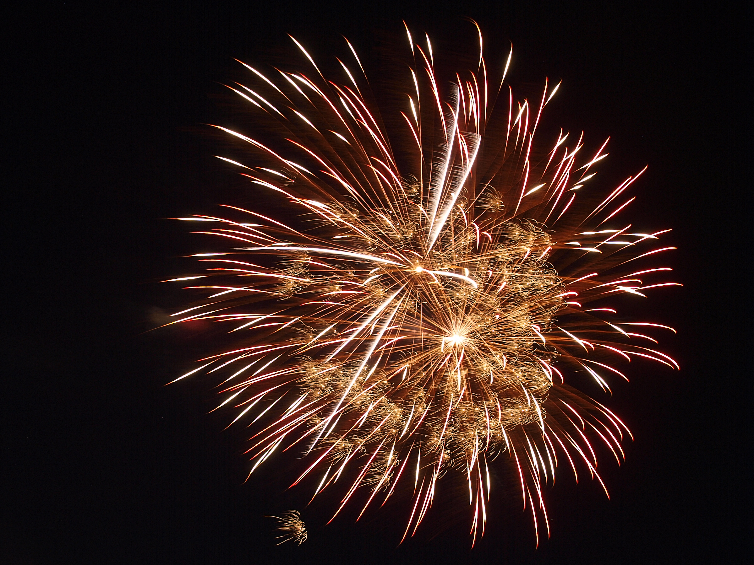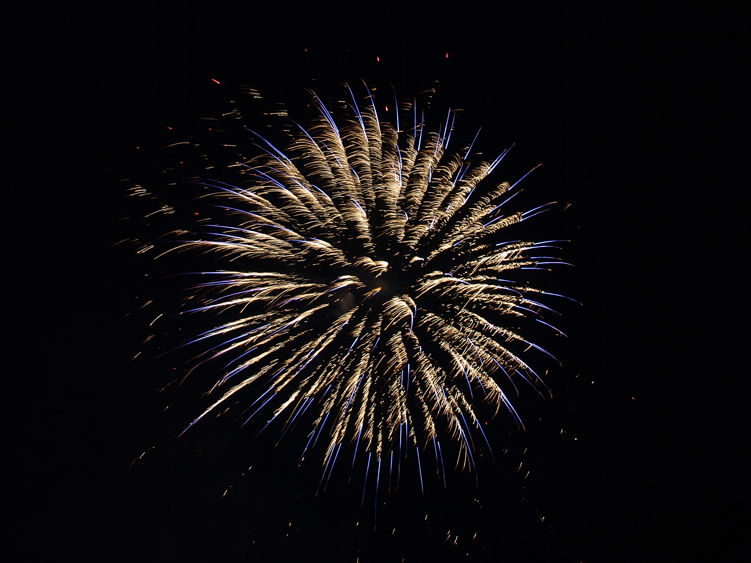 Picture #66: Ayer July 4th fireworks #4 Small: 800x623, 118,172 bytes (116K), (html file) Large: 2400x1800, 4,318,794 bytes (4.1M), (html file) Copyright, Michael Meissner 2009, All rights reserved Olympus E-3 camera with Olympus 14-54mm f/2.8-3.5 lens f/5.0, ISO 100, 4.4 sec, 14.0mm, bulb mode, natural color, matrix metering, noise filter low 35mm equivalent focal length 28.0mm Extra equipment used: tripod, radio shutter release Programs used: gimp Taken by Michael Meissner on July 04, 2009 21:36:40 Last modified on July 06, 2009 at 00:23 This picture is one of my favorites. |