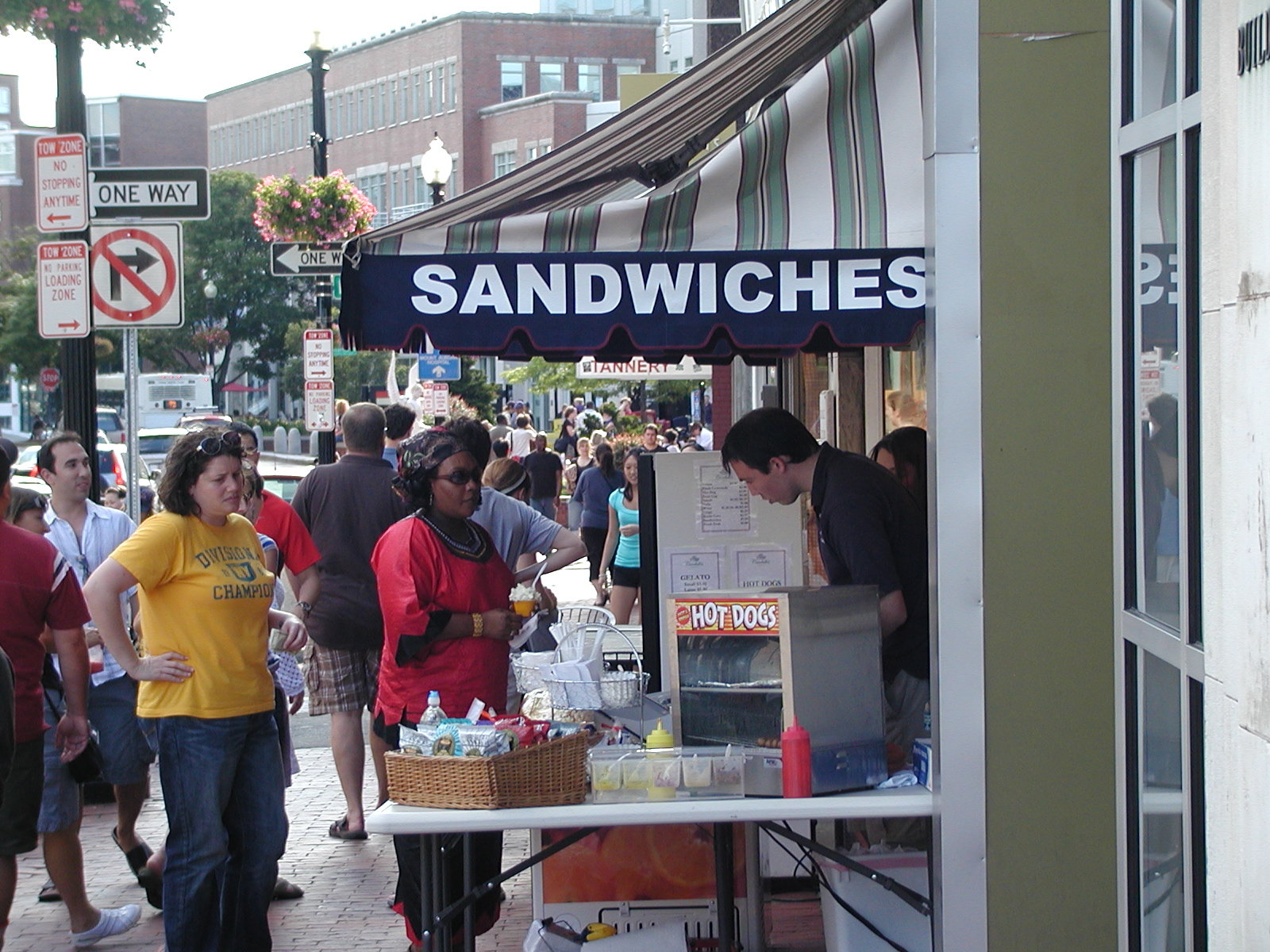 Picture #46: Food for sale Small: 800x623, 98,823 bytes (97K), (html file) Large: 1600x1200, 1,231,066 bytes (1.2M), (html file) Copyright, Michael Meissner 2009, All rights reserved Olympus C-2100UZ camera f/2.8, ISO 100, 1/250 sec, 17.3mm, auto mode, SHQ, cloudy, matrix metering 35mm equivalent focal length 96.0mm Taken by Michael Meissner on July 05, 2009 16:56:22 Last modified on July 06, 2009 at 08:15 Shutter speed of 1/125 or 1/250 may indicate use of flash |