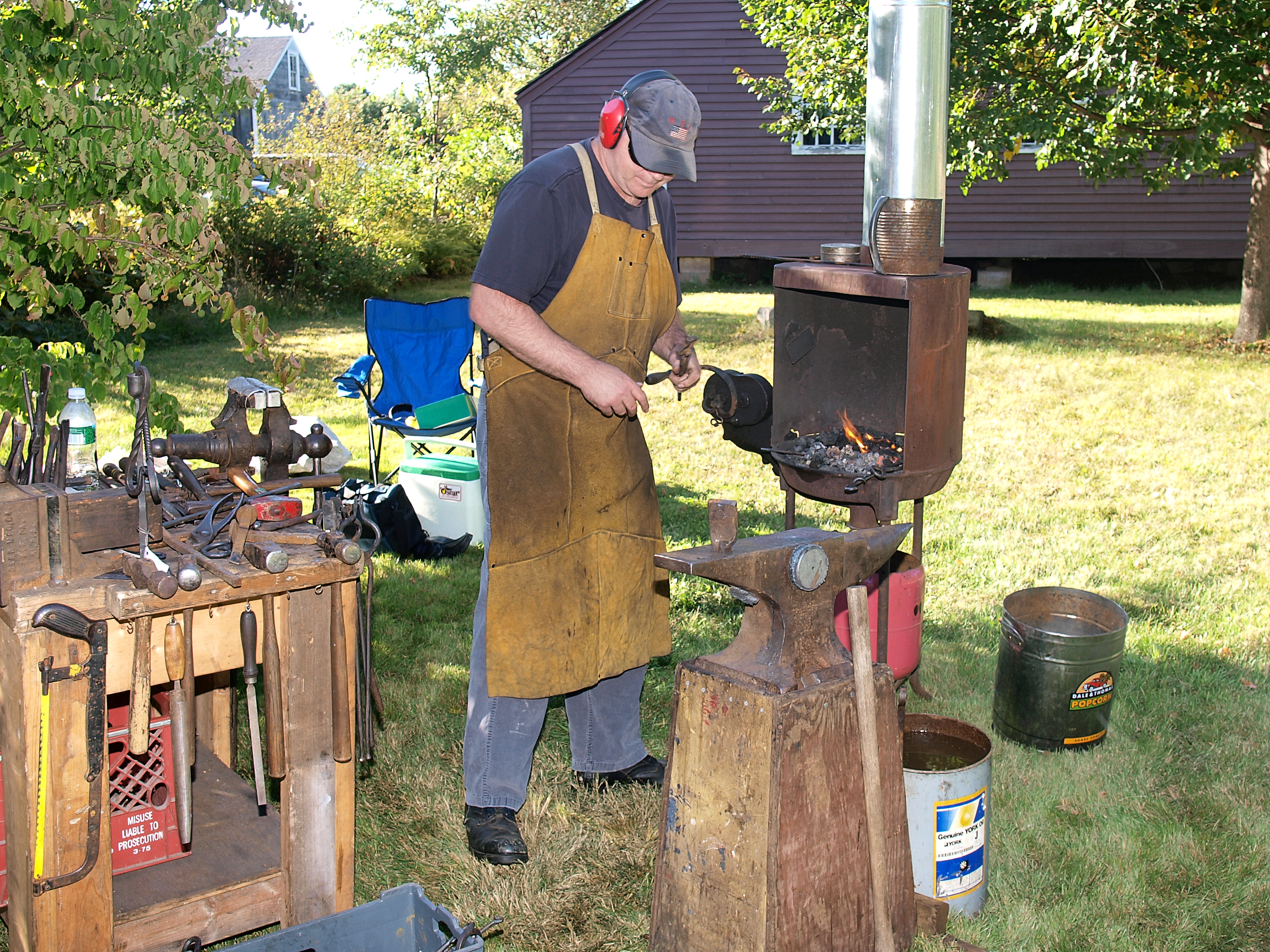 Picture #21: Blacksmith #2 Thumb: 400x300, 57,568 bytes (57K) Small: 800x623, 168,837 bytes (165K), (html file) Large: 3200x2400, 8,619,998 bytes (8.2M), (html file) Copyright, Michael Meissner 2009, All rights reserved Olympus E-3 camera with Olympus 14-54mm f/2.8-3.5 lens f/4.0, ISO 100, FL-36 flash, 1/125 sec, 17.0mm, auto mode, natural color, auto gradation, SHQ, matrix metering, IS1 (All Direction Shake IS), noise filter low 35mm equivalent focal length 34.0mm Extra equipment used: FL-36 flash Programs used: gimp Taken by Michael Meissner on September 20, 2009 16:31:54 Last modified on October 08, 2009 at 22:10 |