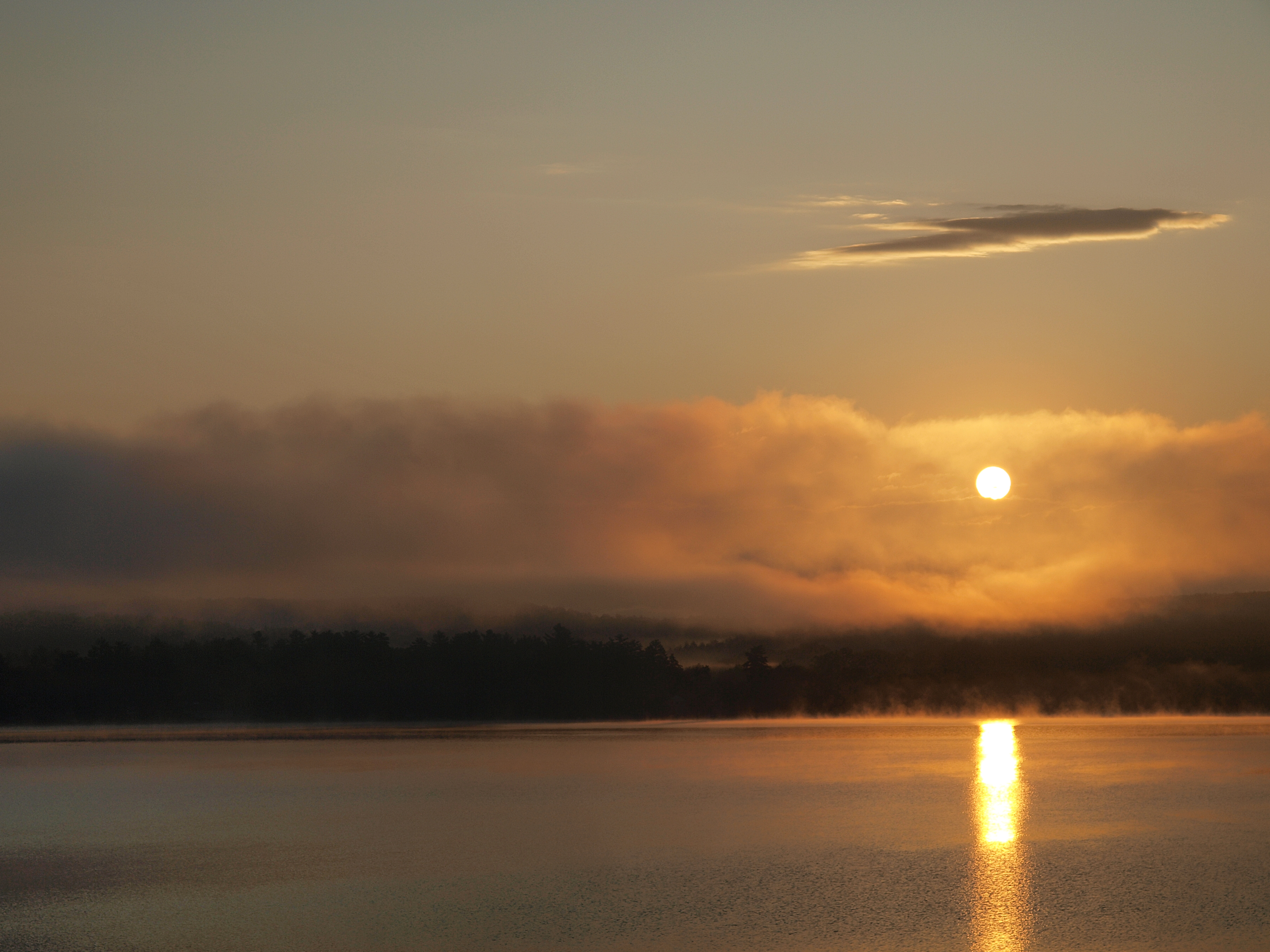 Picture #8: Sunrise at Lake Webster, New Hampshire #8 Small: 900x698, 60,582 bytes (60K), (html file) Large: 3600x2700, 7,196,821 bytes (6.9M), (html file) Copyright, Michael Meissner 2009, All rights reserved Olympus E-3 camera with Olympus 14-54mm f/2.8-3.5 lens f/8.0, ISO 100, 1/640 sec, 47.0mm, auto mode, natural color, auto gradation, SHQ, spot metering, IS1 (All Direction Shake IS), noise filter low, exposure bracketing (shot 1) 35mm equivalent focal length 94.0mm Programs used: gimp Taken by Michael Meissner on October 05, 2009 07:10:26 Last modified on October 06, 2009 at 07:33 This picture is one of my favorites. |