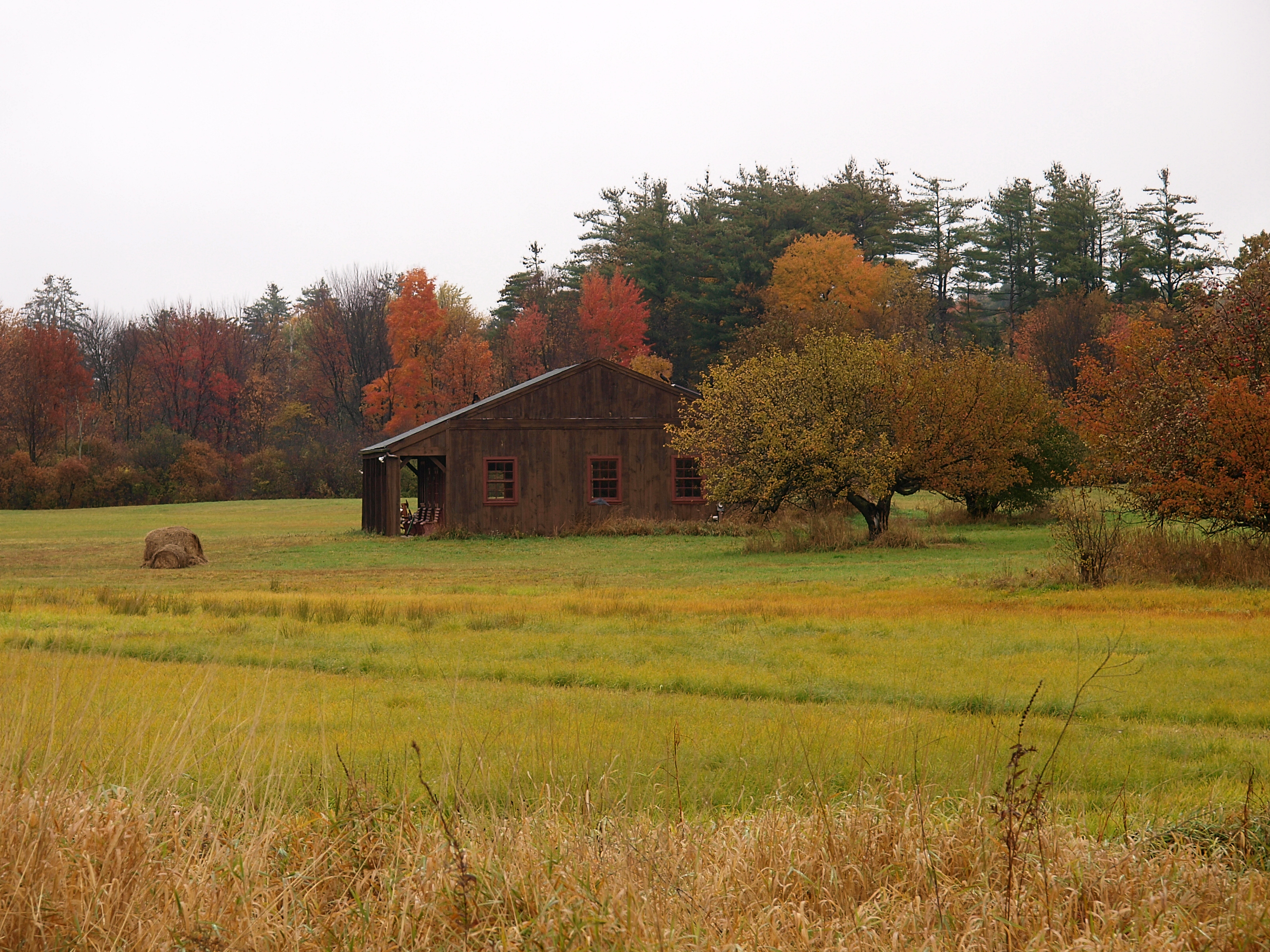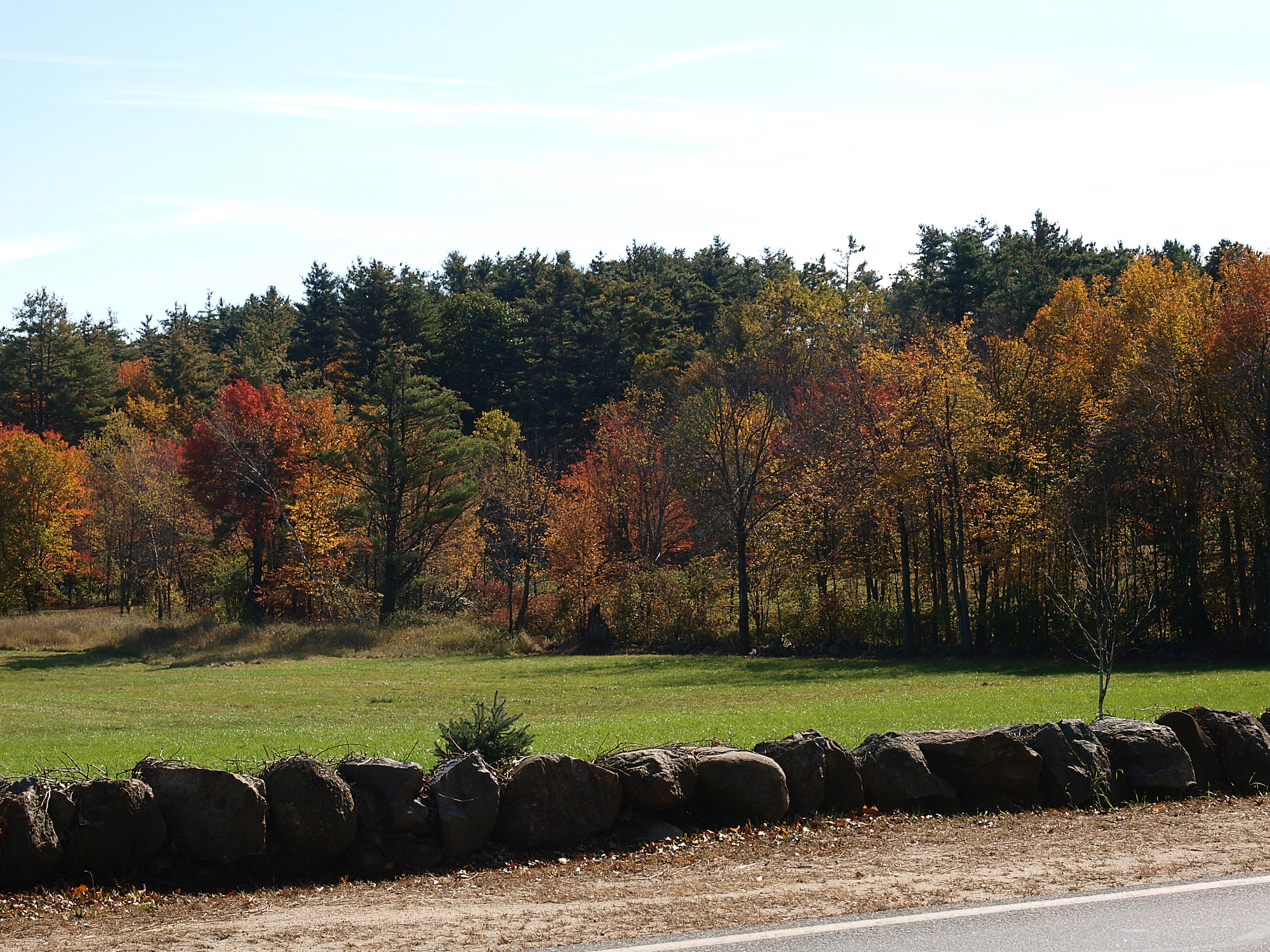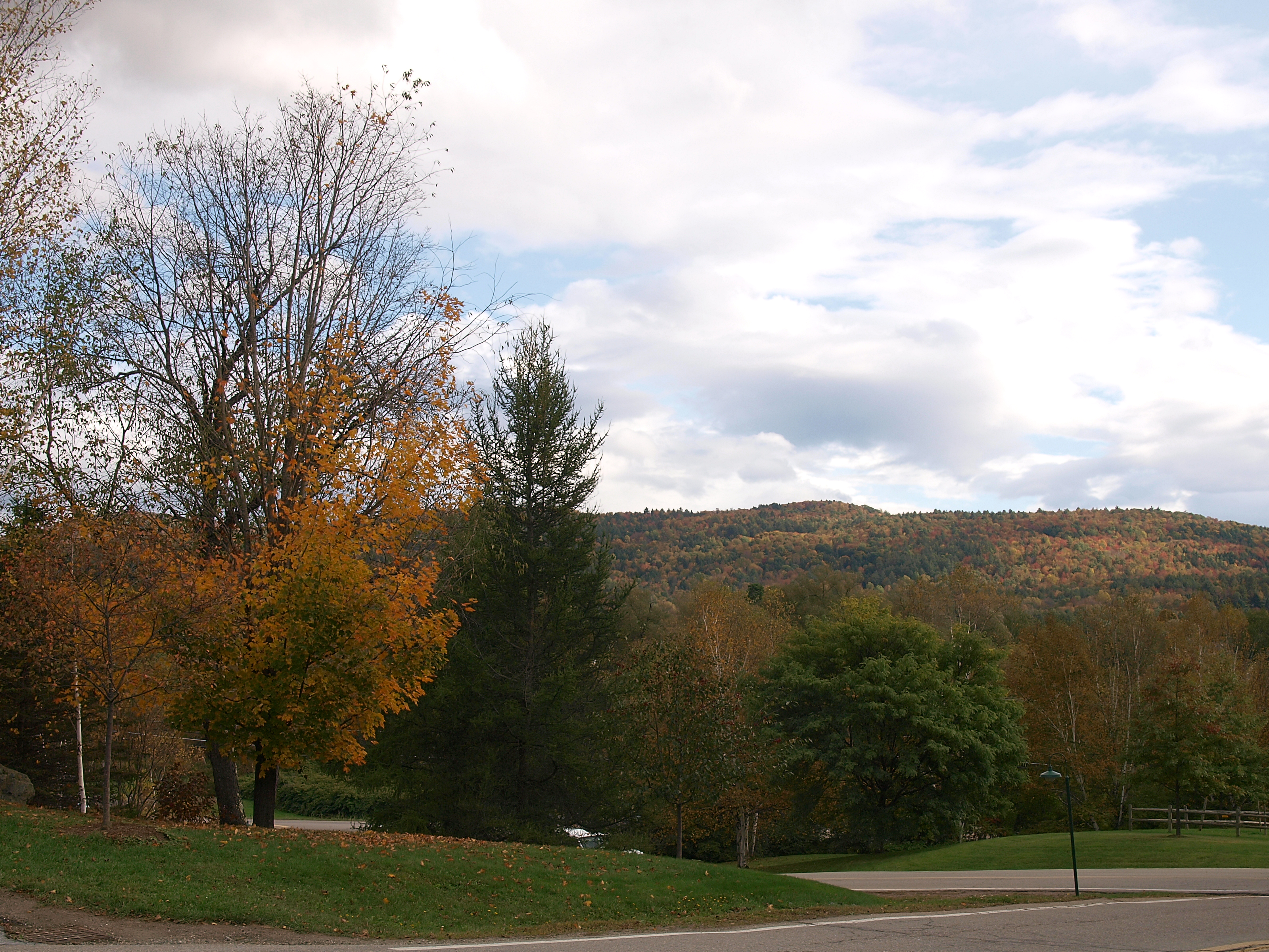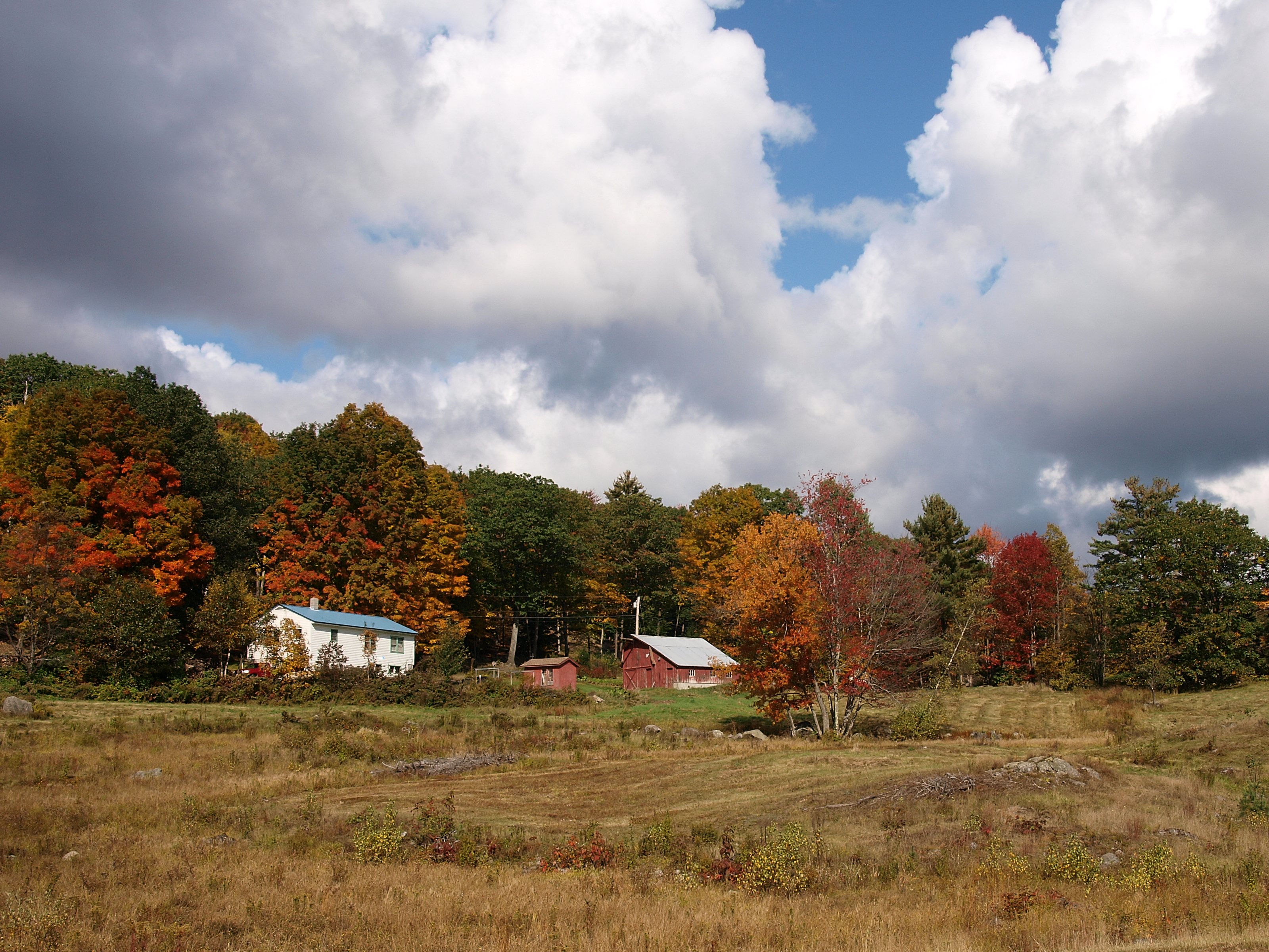 Picture #24: New Hampshire fall Small: 600x823, 139,198 bytes (136K), (html file) Large: 2400x3200, 8,115,980 bytes (7.7M), (html file) Copyright, Michael Meissner 2009, All rights reserved Olympus E-3 camera with Olympus 14-54mm f/2.8-3.5 lens f/11.0, ISO 100, 1/80 sec, 14.0mm, aperture priority, natural color, auto gradation, SHQ, matrix metering, IS1 (All Direction Shake IS), noise filter low 35mm equivalent focal length 28.0mm Programs used: gimp Taken by Michael Meissner on October 05, 2009 09:03:59 Last modified on October 06, 2009 at 09:17 This picture is one of my favorites. |