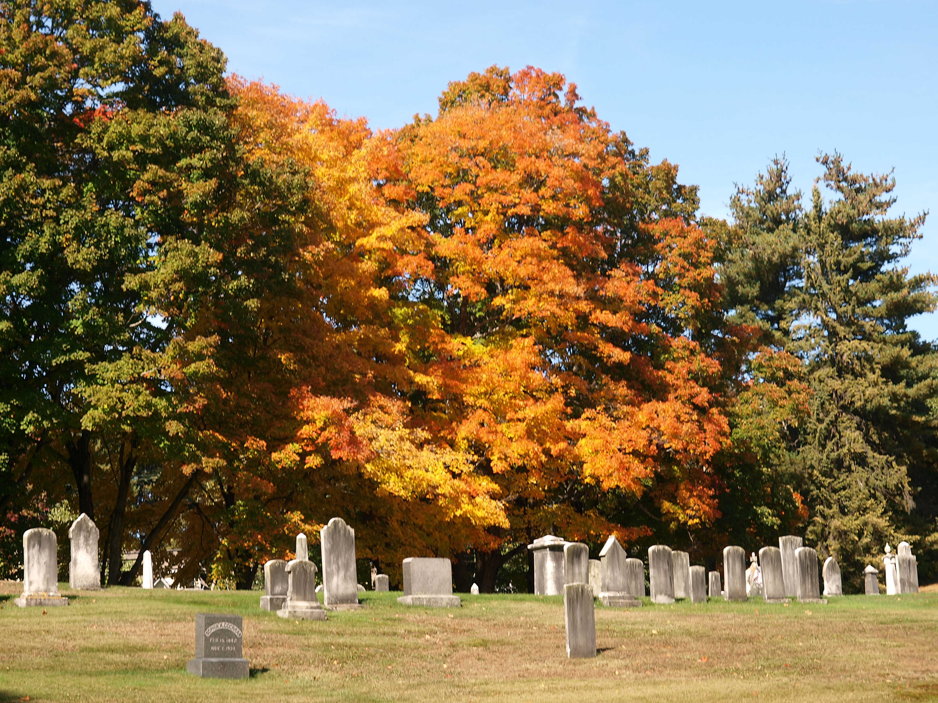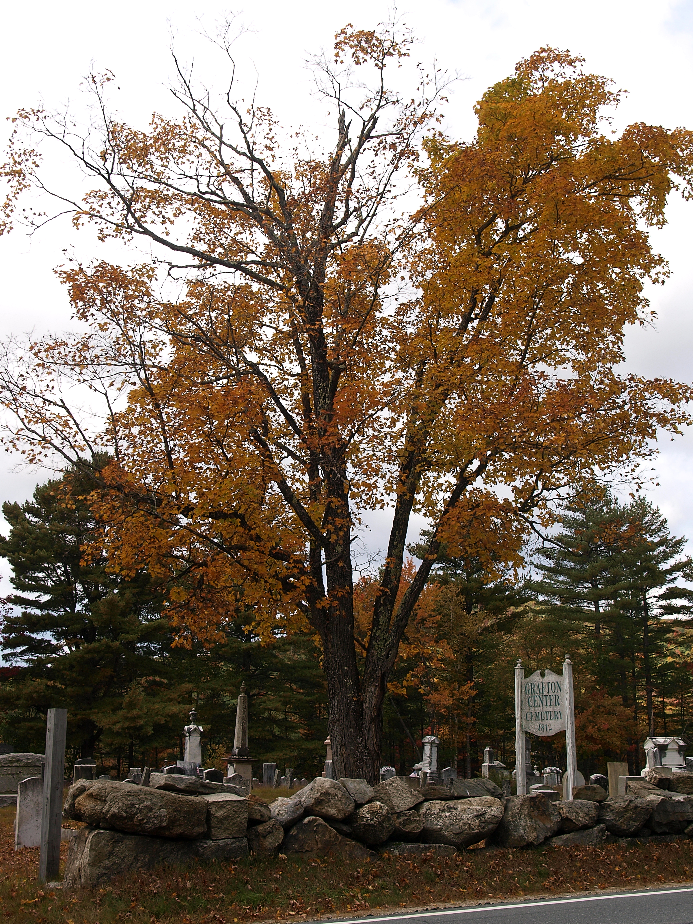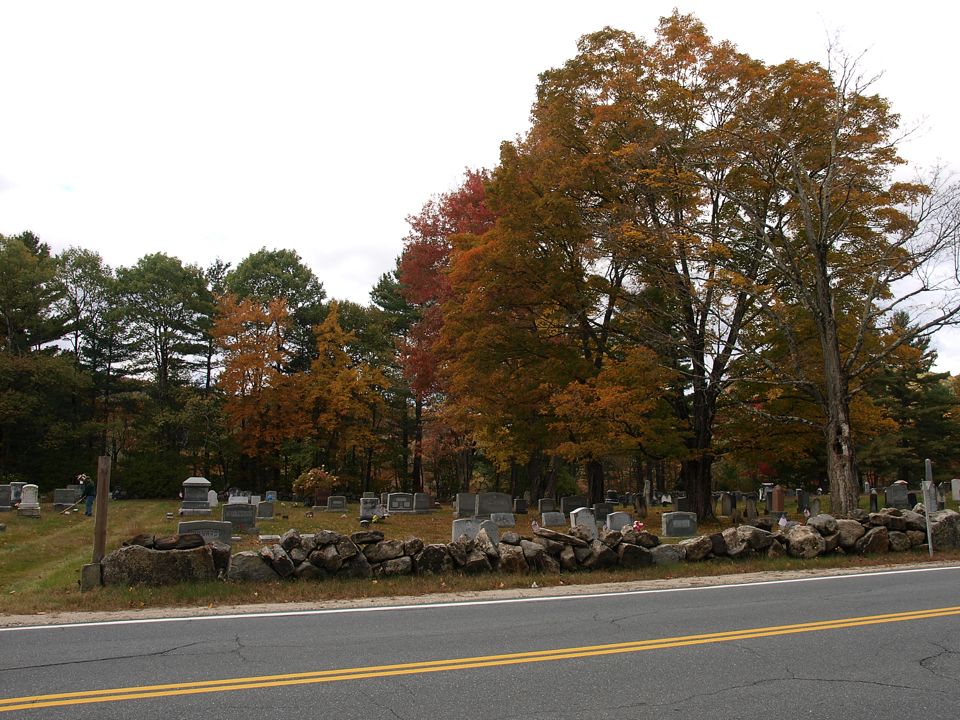 Picture #36: Grafton New Hampshire cemetery in fall #2 Small: 600x823, 186,674 bytes (183K), (html file) Large: 2400x3200, 8,954,445 bytes (8.5M), (html file) Olympus E-3 camera with Olympus 14-54mm f/2.8-3.5 lens f/5.6, ISO 100, 1/250 sec, 20.0mm, auto mode, natural color, SHQ, matrix metering, IS1 (All Direction Shake IS), noise filter low 35mm equivalent focal length 40.0mm Programs used: gimp Taken by Michael Meissner on October 05, 2009 11:35:52 Last modified on October 14, 2009 at 08:47 |