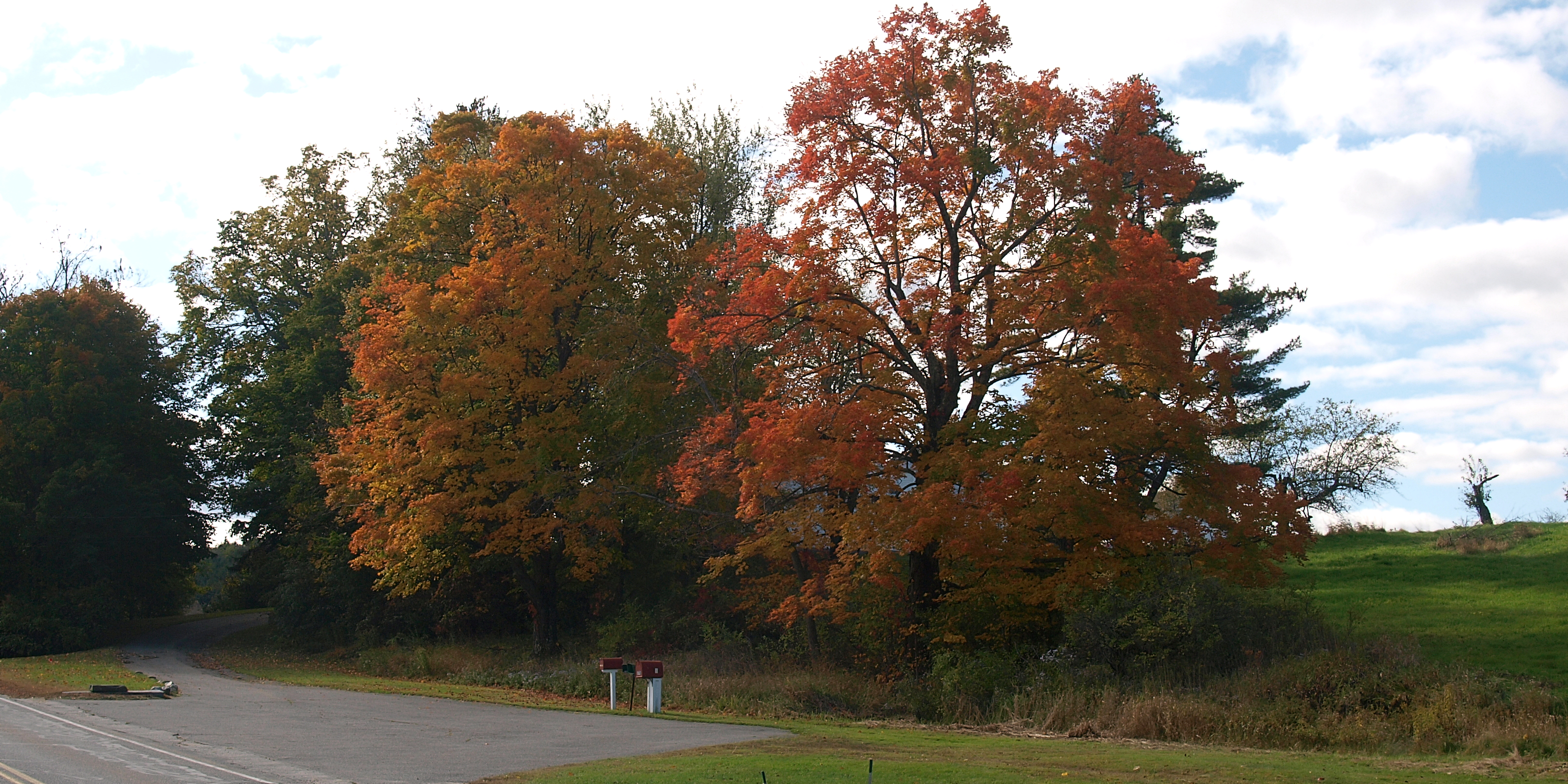 Picture #41: Vermont fall #2 Small: 800x623, 91,631 bytes (90K), (html file) Large: 3200x2400, 6,871,608 bytes (6.6M), (html file) Copyright, Michael Meissner 2009, All rights reserved Olympus E-3 camera with Olympus 14-54mm f/2.8-3.5 lens f/5.6, ISO 100, 1/250 sec, 17.0mm, auto mode, natural color, SHQ, matrix metering, IS1 (All Direction Shake IS), noise filter low 35mm equivalent focal length 34.0mm Programs used: gimp Taken by Michael Meissner on October 05, 2009 13:06:29 Last modified on October 07, 2009 at 23:33 |