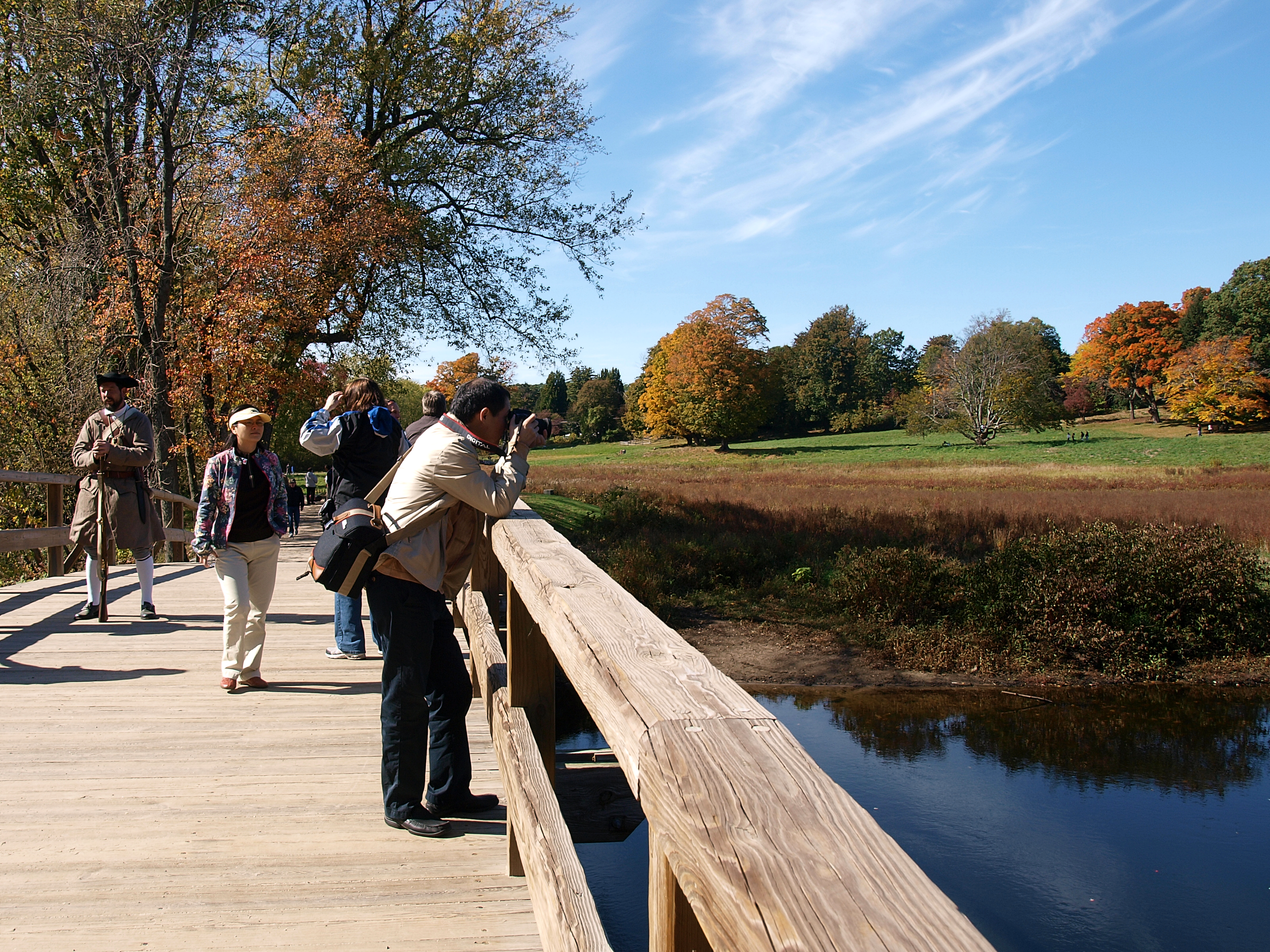 Picture #75: Concord's old north bridge in fall #6 Small: 600x823, 218,603 bytes (214K), (html file) Large: 2400x3200, 11,356,092 bytes (11M), (html file) Olympus E-3 camera with Olympus 14-54mm f/2.8-3.5 lens f/4.5, ISO 100, 1/160 sec, 28.0mm, auto mode, natural color, SHQ, matrix metering, IS1 (All Direction Shake IS), noise filter low 35mm equivalent focal length 56.0mm Programs used: gimp Taken by Michael Meissner on October 12, 2009 12:06:27 Last modified on October 14, 2009 at 21:46 |