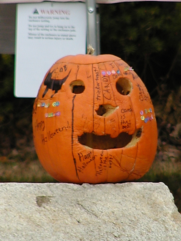Picture #31: Halloween pumpkin Small: 600x823, 71,648 bytes (70K), (html file) Large: 600x800, 438,104 bytes (428K), (html file) Copyright, Michael Meissner 2009, All rights reserved Olympus C-2100UZ camera f/3.5, ISO 100, 1/250 sec, 70.0mm, auto mode, SHQ, cloudy, matrix metering 35mm equivalent focal length 388.0mm Programs used: gimp Taken by Michael Meissner on November 05, 2009 09:30:07 Last modified on November 08, 2009 at 19:17 Shutter speed of 1/125 or 1/250 may indicate use of flash |