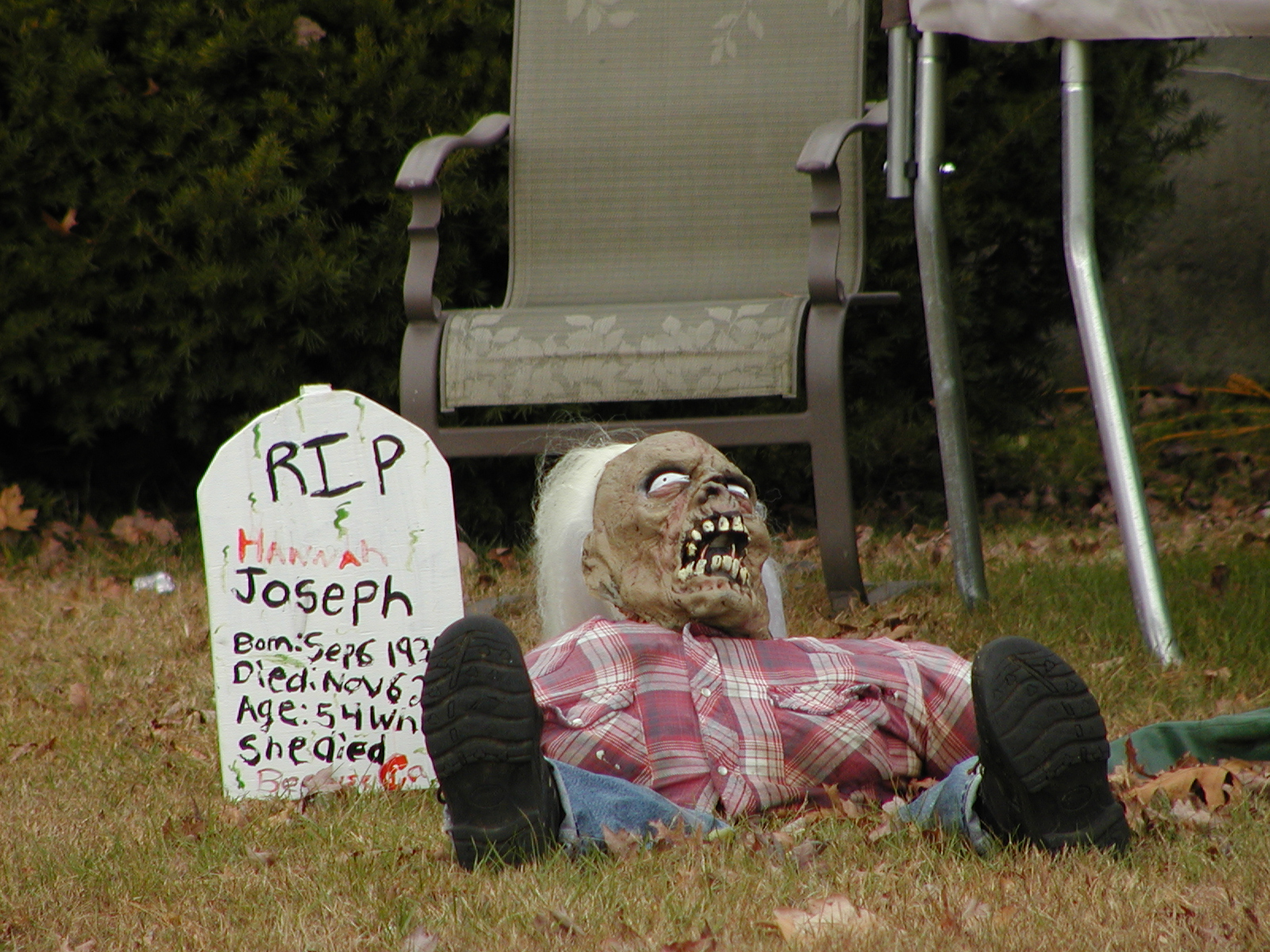 Picture #32: Halloween corpse Small: 800x623, 90,170 bytes (89K), (html file) Large: 1600x1200, 1,210,963 bytes (1.2M), (html file) Copyright, Michael Meissner 2009, All rights reserved Olympus C-2100UZ camera f/3.5, ISO 100, 1/200 sec, 70.0mm, auto mode, SHQ, cloudy, matrix metering 35mm equivalent focal length 388.0mm Taken by Michael Meissner on November 05, 2009 09:30:14 Last modified on November 08, 2009 at 19:18 |