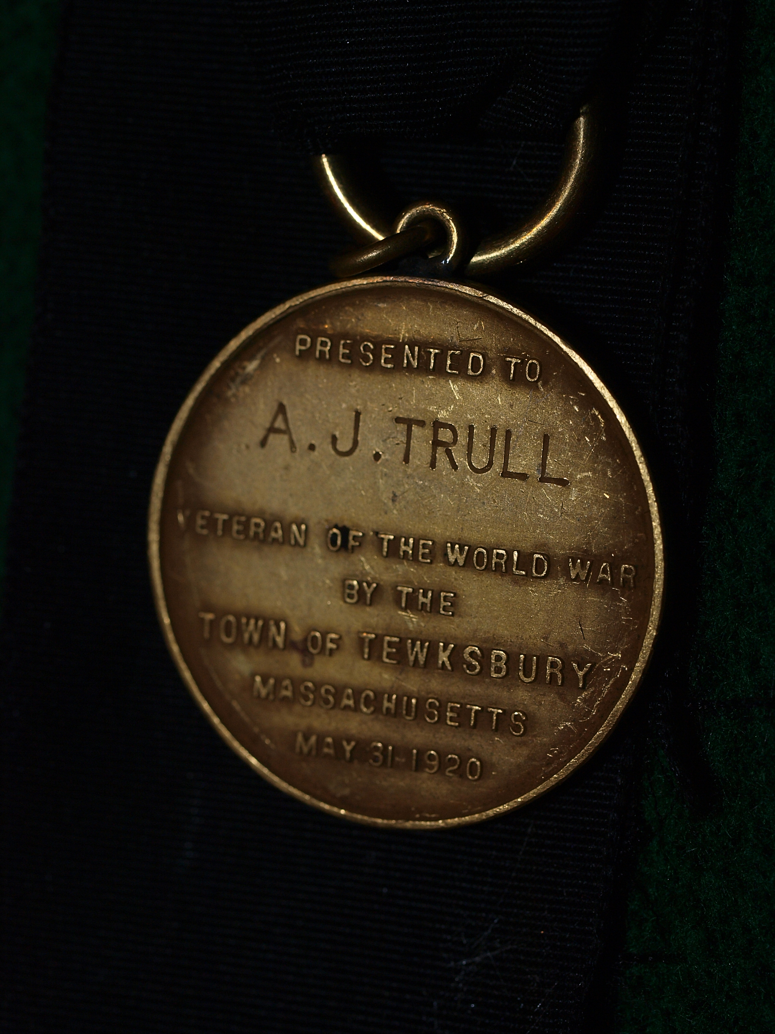 Picture #4: A. J. Trull World War I medal #4 Small: 600x846, 115,697 bytes (113K), (html file) Large: 2400x3200, 6,484,130 bytes (6.2M), (html file) Copyright, Michael Meissner 2009, All rights reserved Olympus E-3 camera with Olympus 50mm f/2.0 lens f/5.6, ISO 400, FL-36 flash, 1/100 sec, 50.0mm, aperture priority, natural color, matrix metering, IS1 (All Direction Shake IS) 35mm equivalent focal length 100.0mm Extra equipment used: FL-36 flash Programs used: gimp Taken by Michael Meissner on November 26, 2009 16:53:07 Last modified on November 26, 2009 at 19:25 |