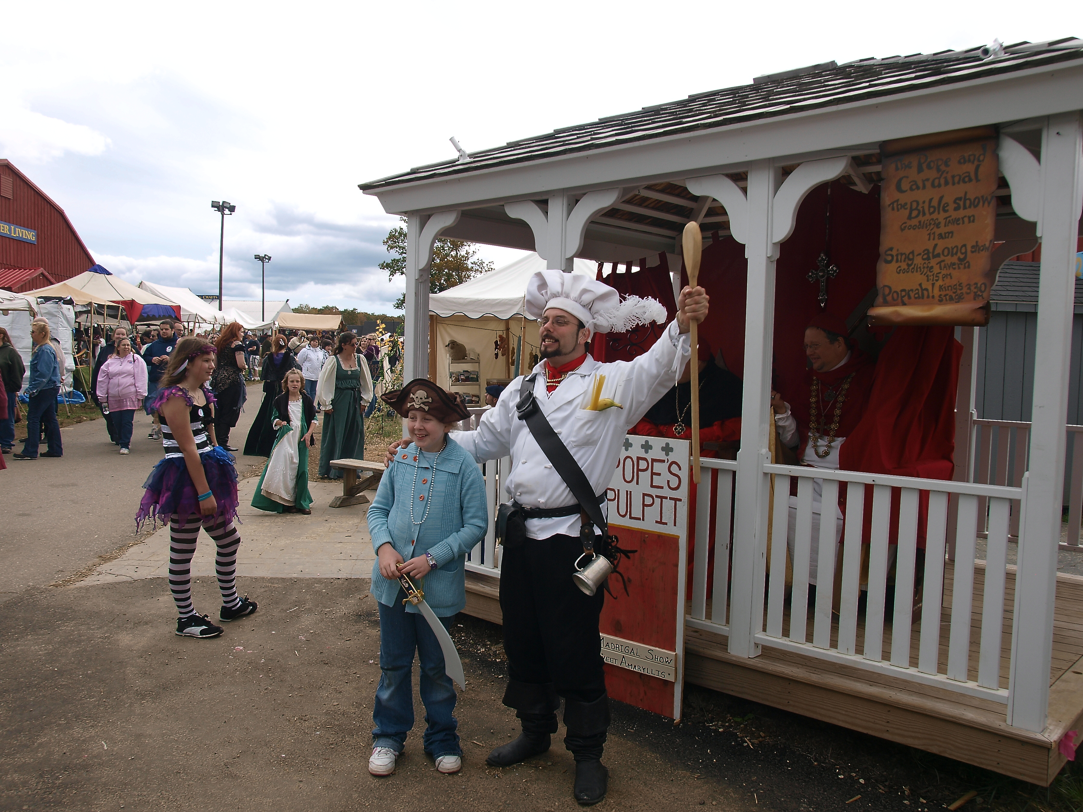 Picture #18: Cook and pirate Small: 900x698, 129,290 bytes (127K), (html file) Large: 3600x2700, 7,969,979 bytes (7.6M), (html file) Copyright, Michael Meissner 2009, All rights reserved Olympus E-3 camera with Olympus 14-54mm f/2.8-3.5 lens f/5.6, ISO 100, 1/250 sec, 14.0mm, auto mode, natural color, SHQ, center weight metering, IS1 (All Direction Shake IS), noise filter low 35mm equivalent focal length 28.0mm Programs used: default crop, gimp Taken by Michael Meissner on October 10, 2009 14:20:39 Last modified on February 06, 2011 at 18:05 |