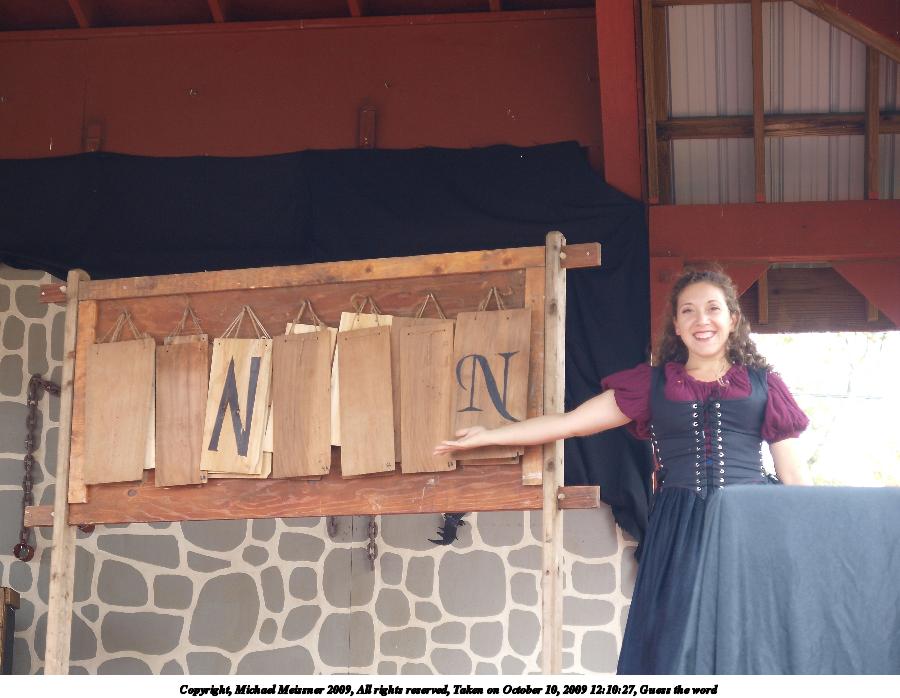 Picture #2: Guess the word Small: 900x698, 84,650 bytes (83K), (html file) Large: 3600x2700, 7,045,165 bytes (6.7M), (html file) Copyright, Michael Meissner 2009, All rights reserved Olympus E-3 camera with Olympus 14-54mm f/2.8-3.5 lens f/3.3, ISO 200, 1/80 sec, 41.0mm, auto mode, natural color, SHQ, center weight metering, IS1 (All Direction Shake IS), noise filter low 35mm equivalent focal length 82.0mm Programs used: default crop, gimp Taken by Michael Meissner on October 10, 2009 12:10:27 Last modified on February 06, 2011 at 14:17 |