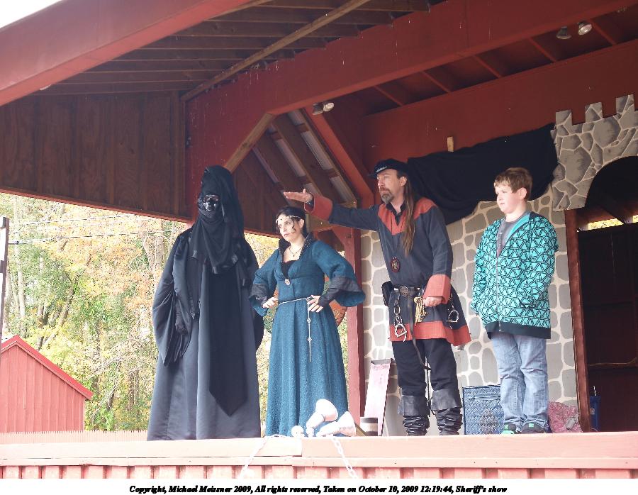 Picture #10: The sheriff show #3 Small: 900x698, 117,111 bytes (115K), (html file) Large: 3600x2700, 8,673,349 bytes (8.3M), (html file) Copyright, Michael Meissner 2009, All rights reserved Olympus E-3 camera with Olympus 14-54mm f/2.8-3.5 lens f/3.2, ISO 160, 1/60 sec, 29.0mm, auto mode, natural color, auto gradation, SHQ, center weight metering, IS1 (All Direction Shake IS), noise filter low 35mm equivalent focal length 58.0mm Programs used: default crop, gimp Taken by Michael Meissner on October 10, 2009 15:55:16 Last modified on February 06, 2011 at 18:40 |