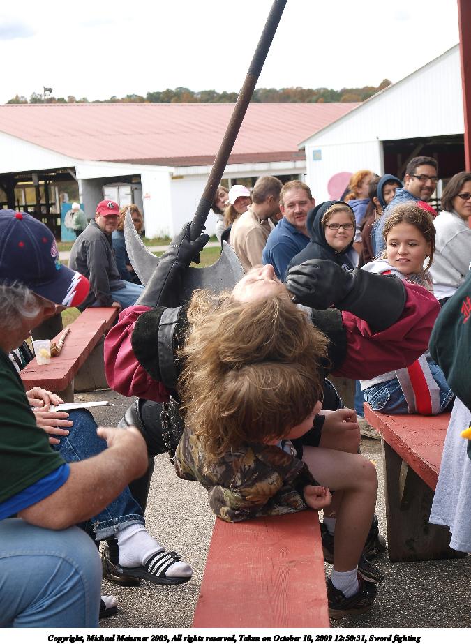 Picture #5: Sword fighting #5 Small: 900x698, 109,177 bytes (107K), (html file) Large: 3600x2700, 7,564,088 bytes (7.2M), (html file) Copyright, Michael Meissner 2009, All rights reserved Olympus E-3 camera with Olympus 14-54mm f/2.8-3.5 lens f/3.2, ISO 250, 1/500 sec, 32.0mm, shutter priority, natural color, SHQ, center weight metering, IS1 (All Direction Shake IS), noise filter low 35mm equivalent focal length 64.0mm Programs used: default crop, gimp Taken by Michael Meissner on October 10, 2009 12:54:42 Last modified on February 06, 2011 at 14:29 |