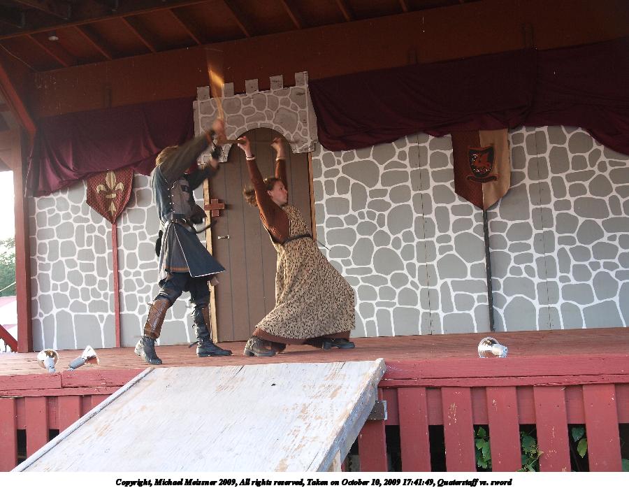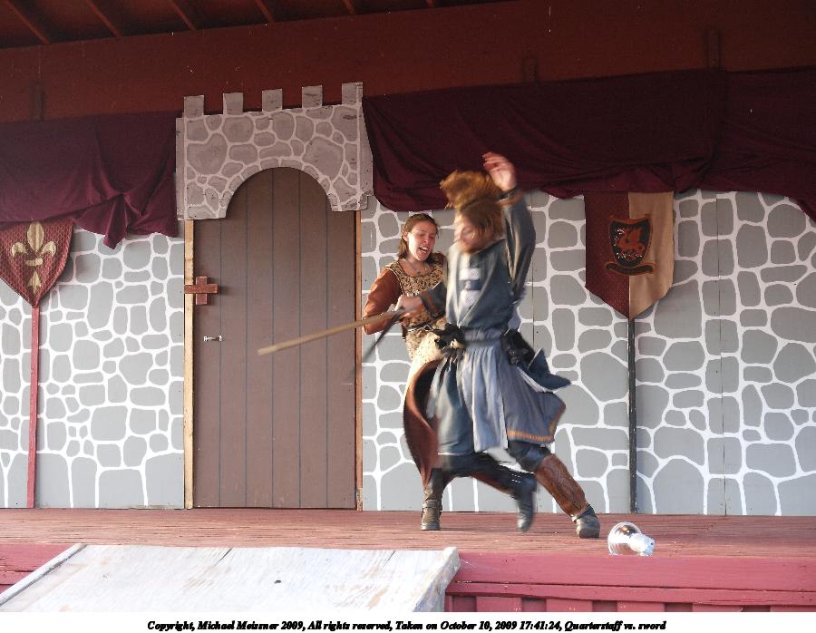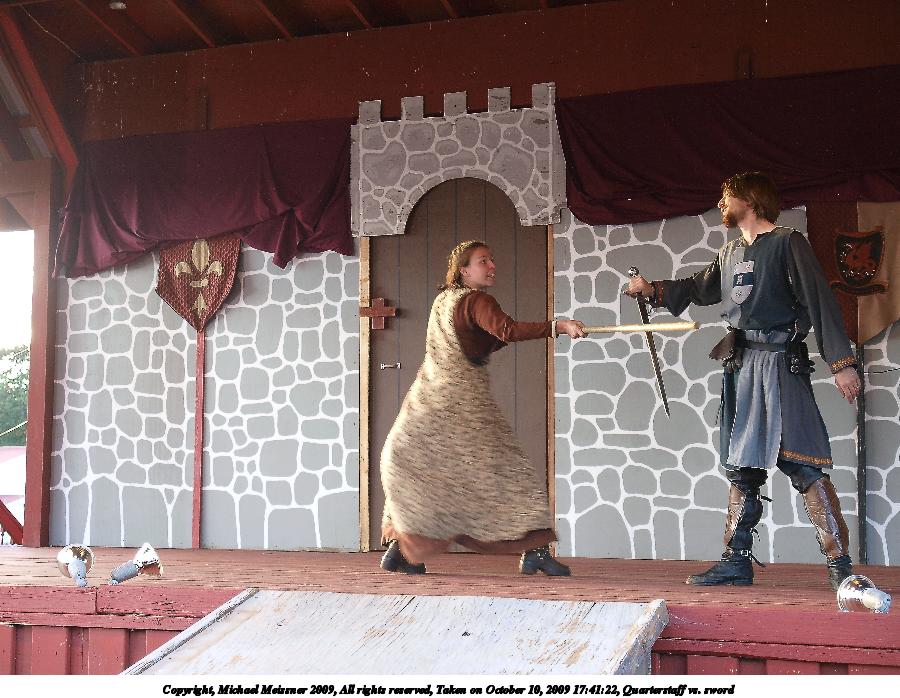 Picture #2: Quarterstaff vs. sword Small: 900x698, 126,169 bytes (124K), (html file) Large: 3600x2700, 10,040,146 bytes (9.6M), (html file) Copyright, Michael Meissner 2009, All rights reserved Olympus E-3 camera with Olympus 14-54mm f/2.8-3.5 lens f/3.2, ISO 400, 1/60 sec, 29.0mm, auto mode, natural color, SHQ, center weight metering, IS1 (All Direction Shake IS), noise filter low 35mm equivalent focal length 58.0mm Programs used: default crop, gimp Taken by Michael Meissner on October 10, 2009 17:41:22 Last modified on February 06, 2011 at 19:08 |