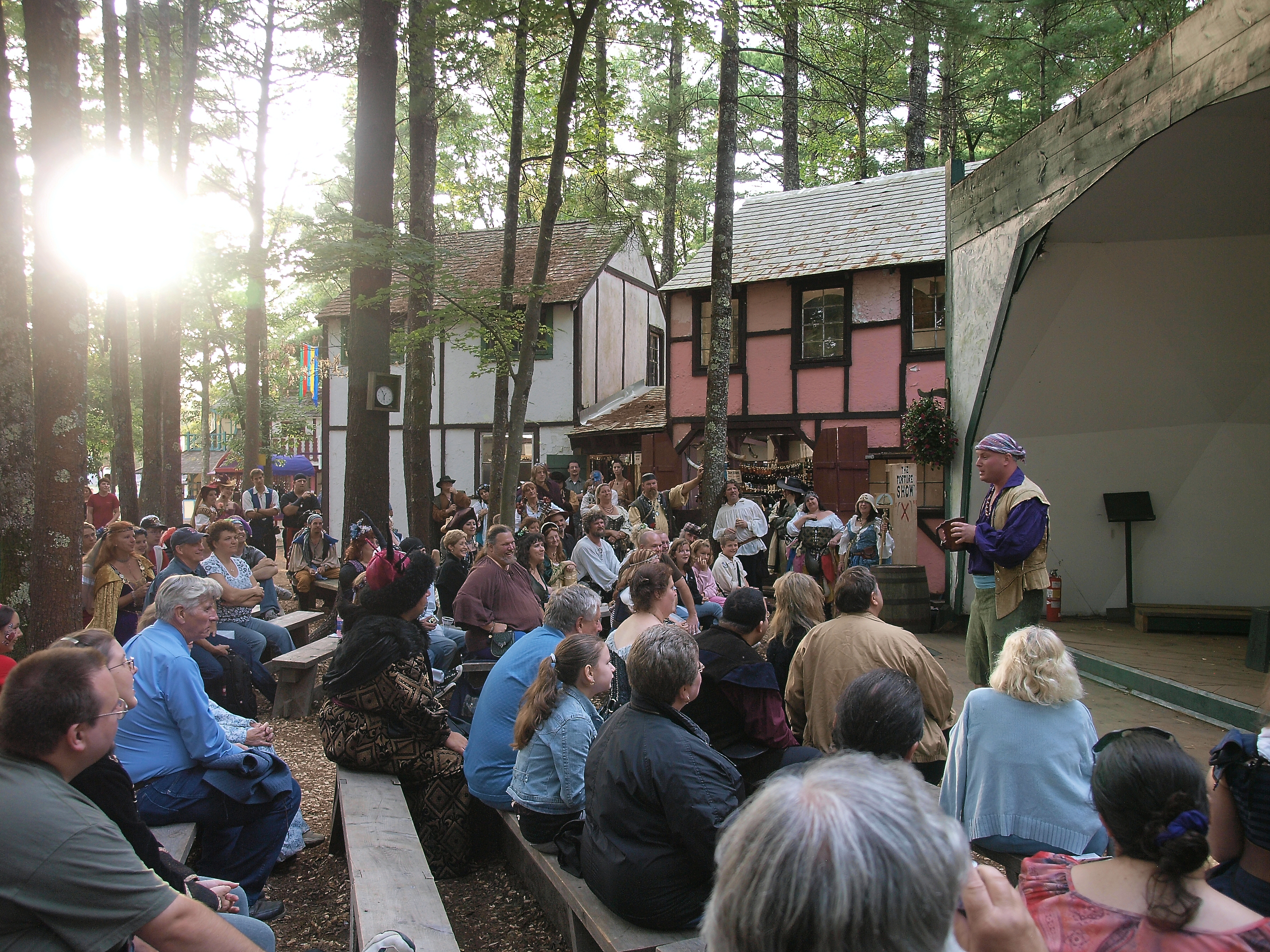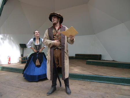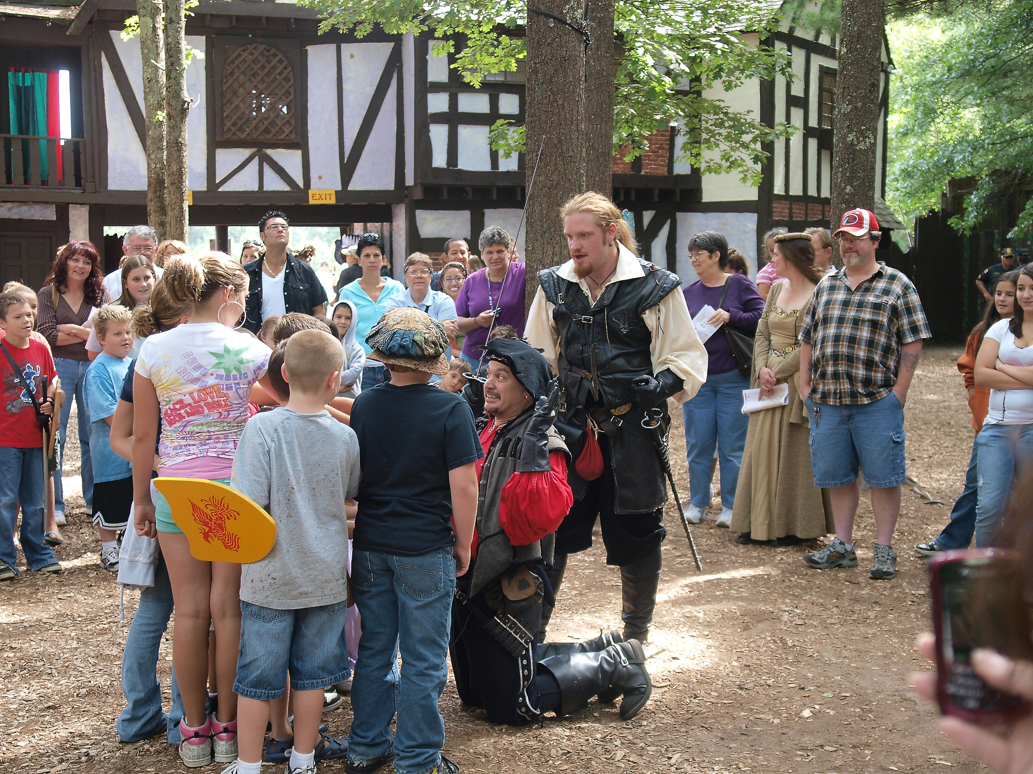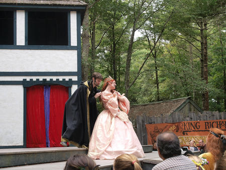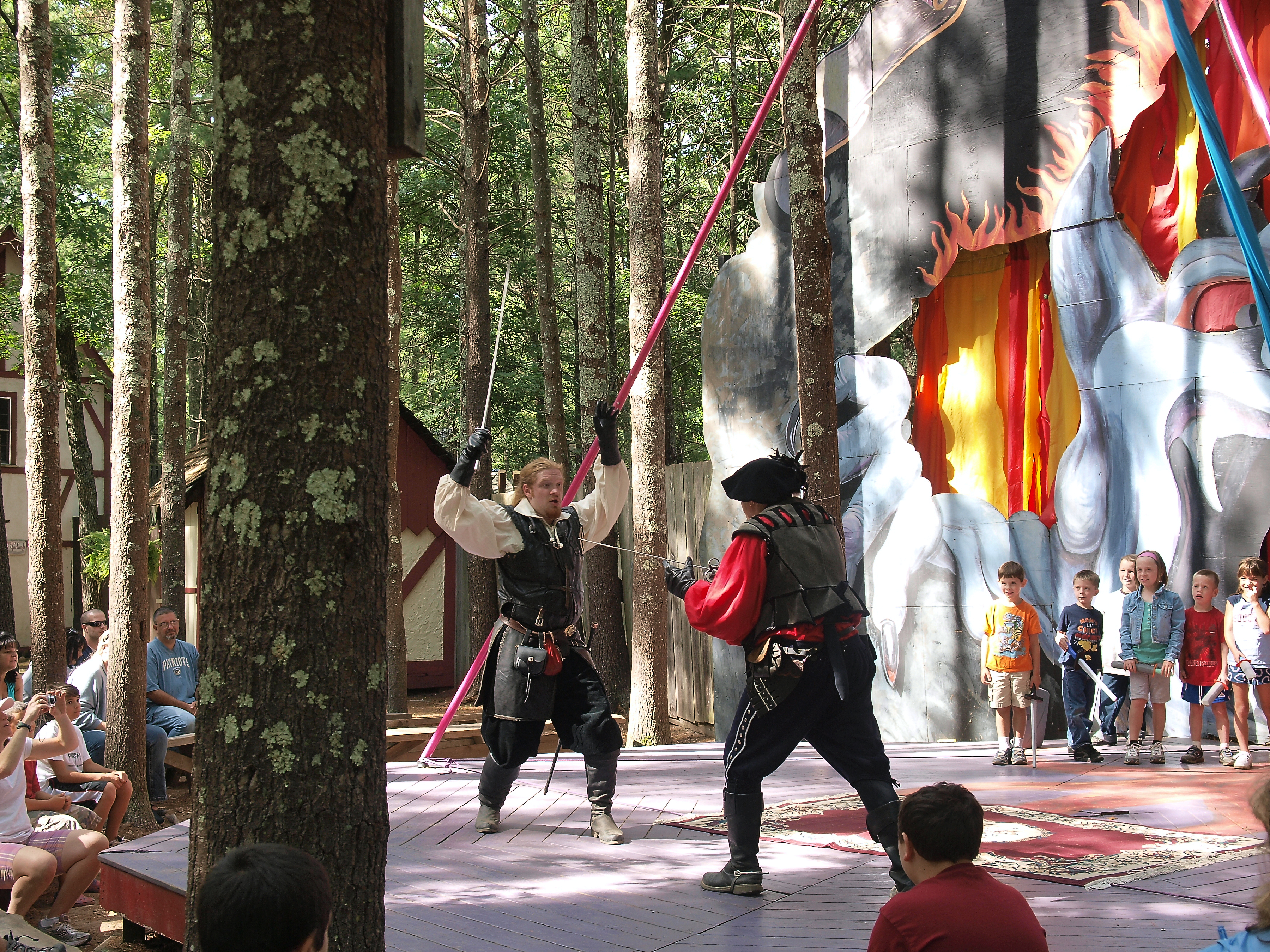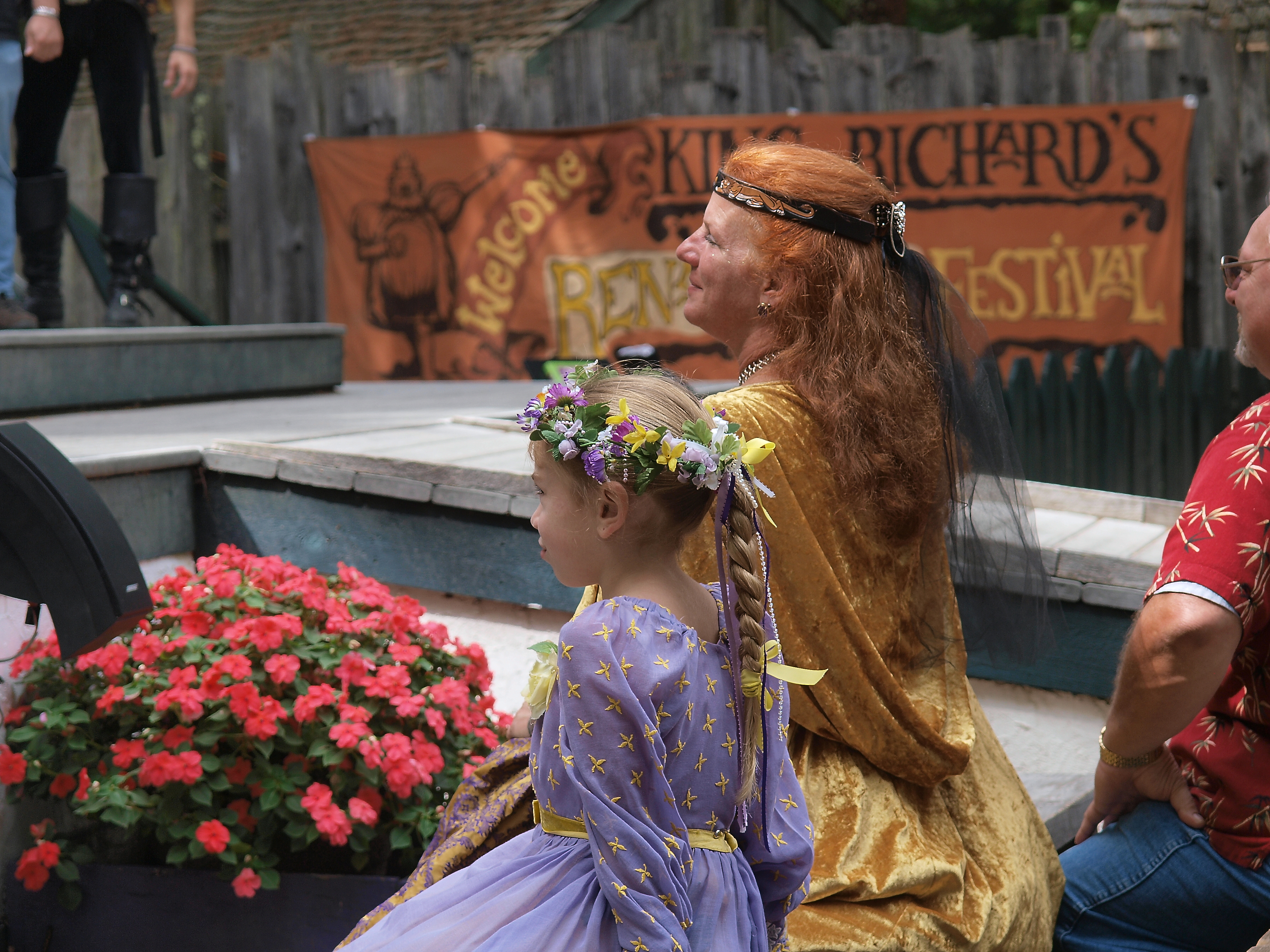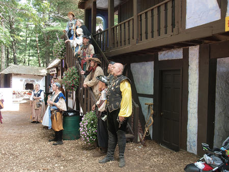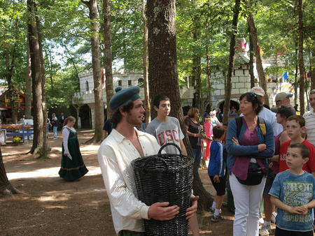 Picture #2: The 3 Graces Thumb: 400x200, 29,676 bytes (29K) Small: 800x423, 59,790 bytes (59K), (html file) Large: 3200x1600, 3,150,127 bytes (3.0M), (html file) Copyright, Michael Meissner 2009, All rights reserved Olympus E-3 camera with Olympus 14-54mm f/2.8-3.5 lens f/3.5, ISO 800, 1/100 sec, 52.0mm, auto mode, natural color, auto gradation, SHQ, center weight metering, IS1 (All Direction Shake IS), noise filter low 35mm equivalent focal length 104.0mm Programs used: gimp, neatimage Taken by Michael Meissner on September 07, 2009 17:47:13 Last modified on January 31, 2011 at 22:05 The 3 Graces now perform at other faires. In 2009, the middle actor was no longer with King Richards, but she came as a patron and they were asked to come up to the finale to do a number. |