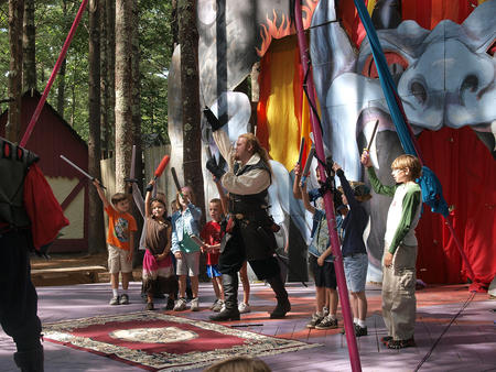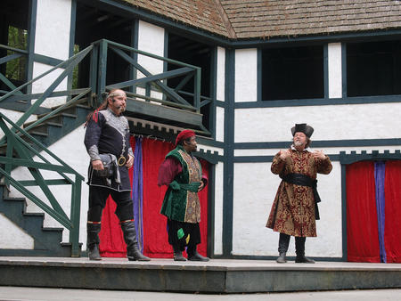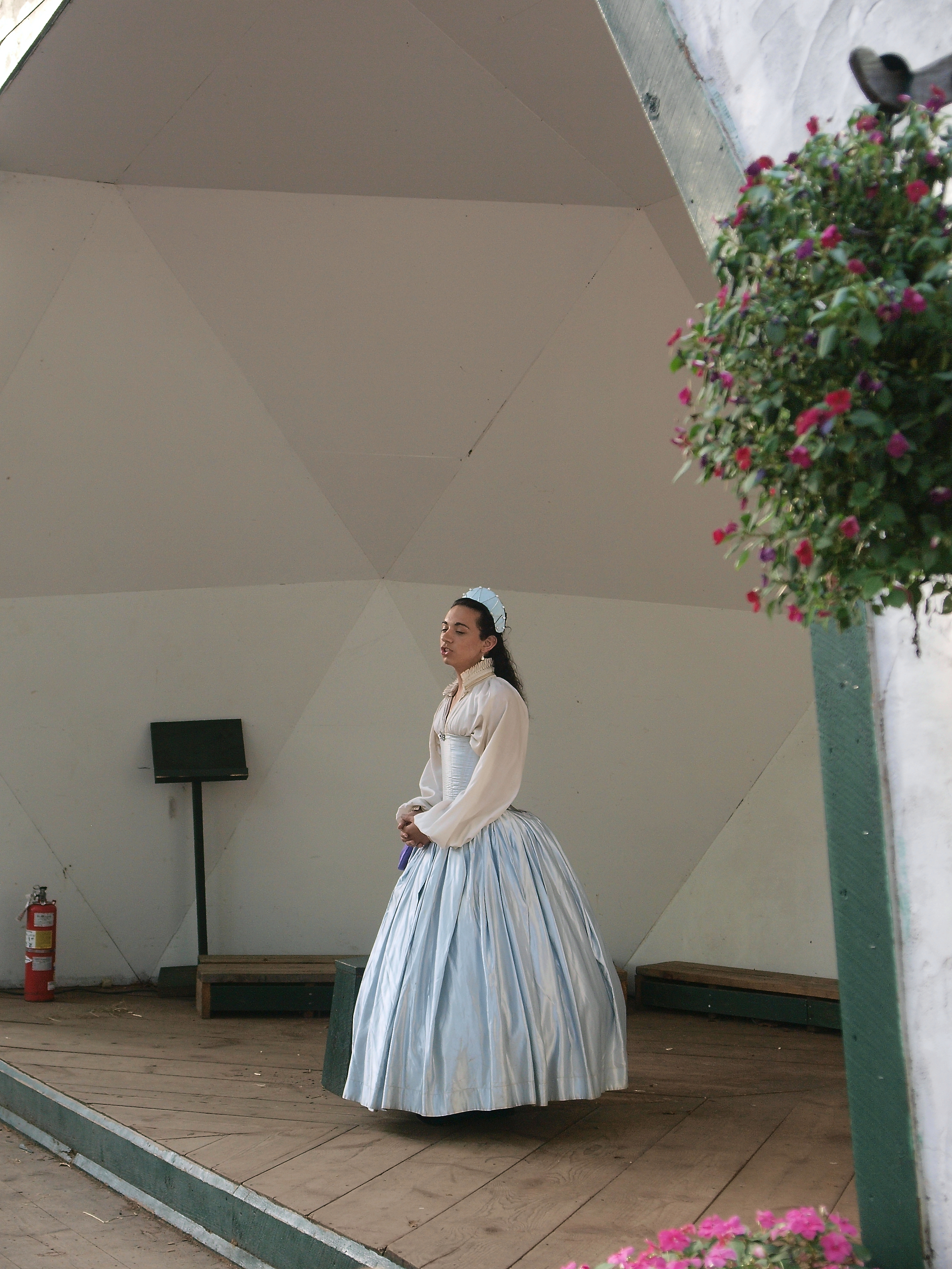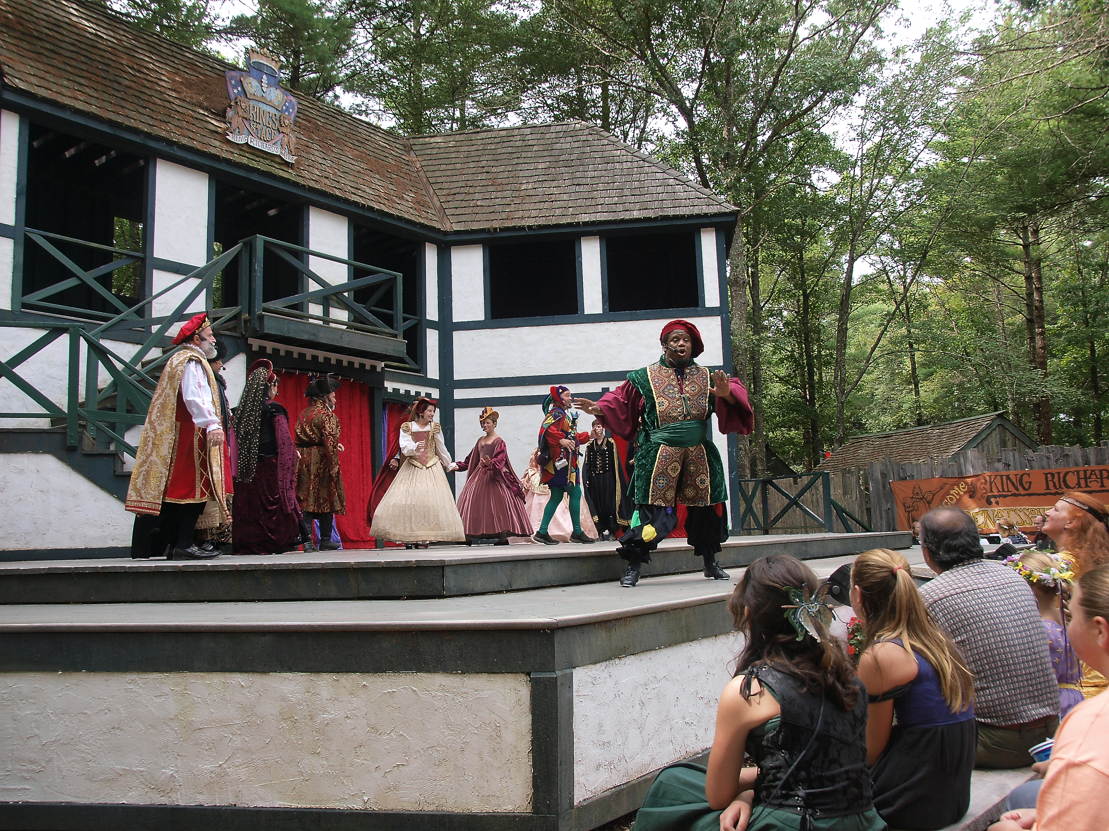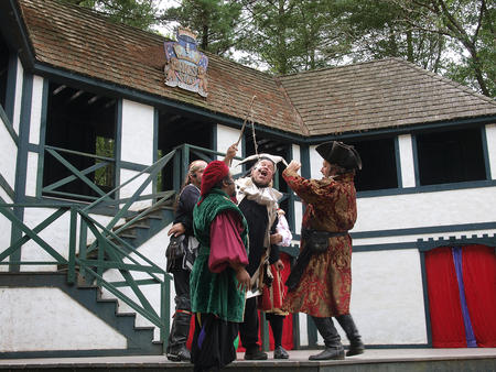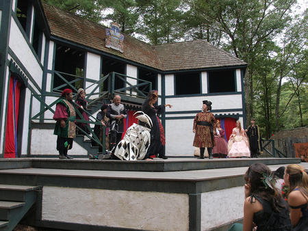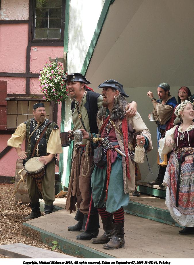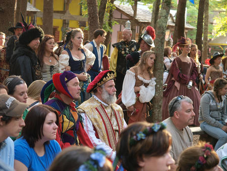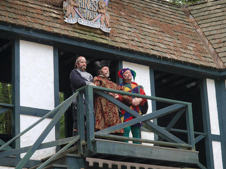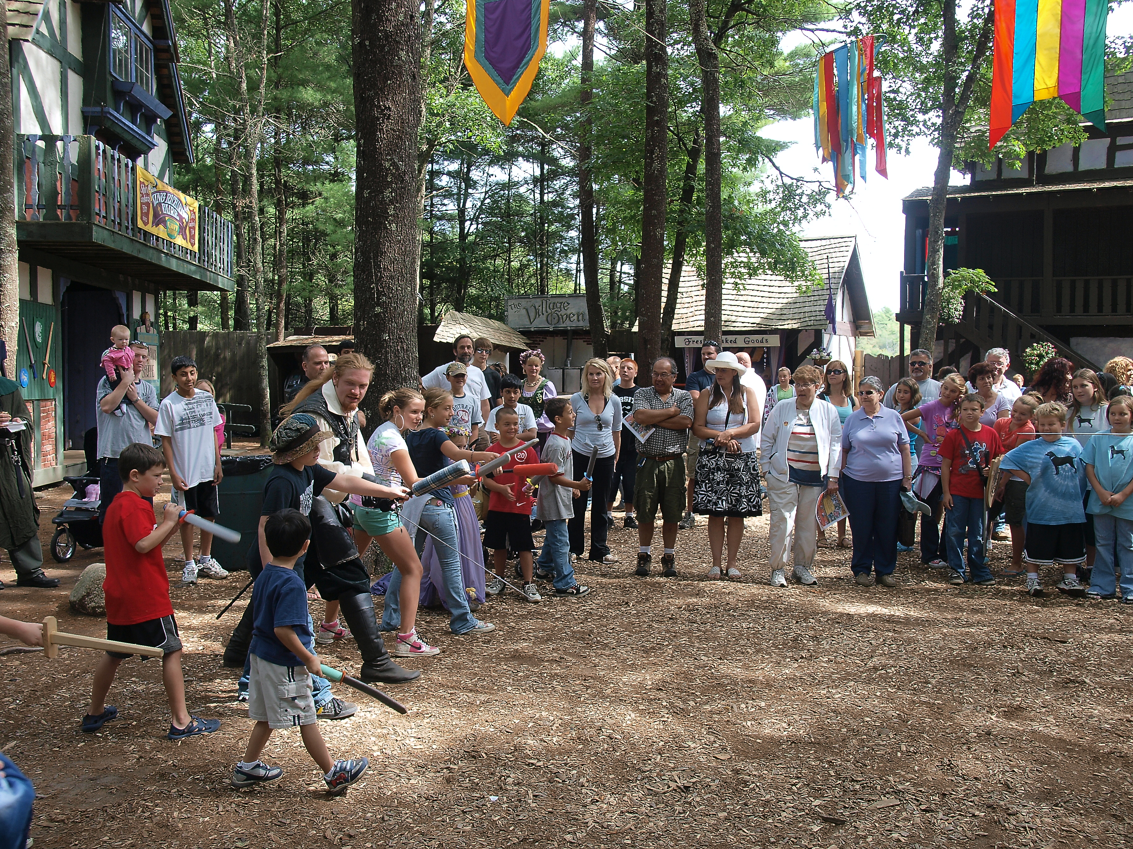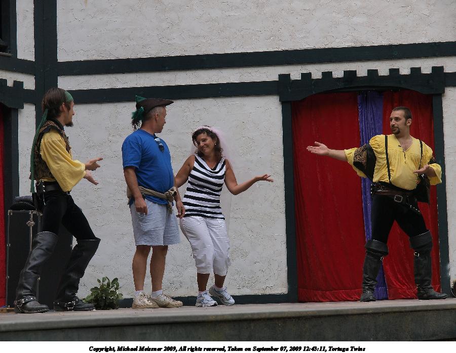 Picture #2: The 3 Graces Thumb: 400x200, 29,676 bytes (29K) Small: 800x423, 59,790 bytes (59K), (html file) Large: 3200x1600, 3,150,127 bytes (3.0M), (html file) Copyright, Michael Meissner 2009, All rights reserved Olympus E-3 camera with Olympus 14-54mm f/2.8-3.5 lens f/3.5, ISO 800, 1/100 sec, 52.0mm, auto mode, natural color, auto gradation, SHQ, center weight metering, IS1 (All Direction Shake IS), noise filter low 35mm equivalent focal length 104.0mm Programs used: gimp, neatimage Taken by Michael Meissner on September 07, 2009 17:47:13 Last modified on January 31, 2011 at 22:05 The 3 Graces now perform at other faires. In 2009, the middle actor was no longer with King Richards, but she came as a patron and they were asked to come up to the finale to do a number. |