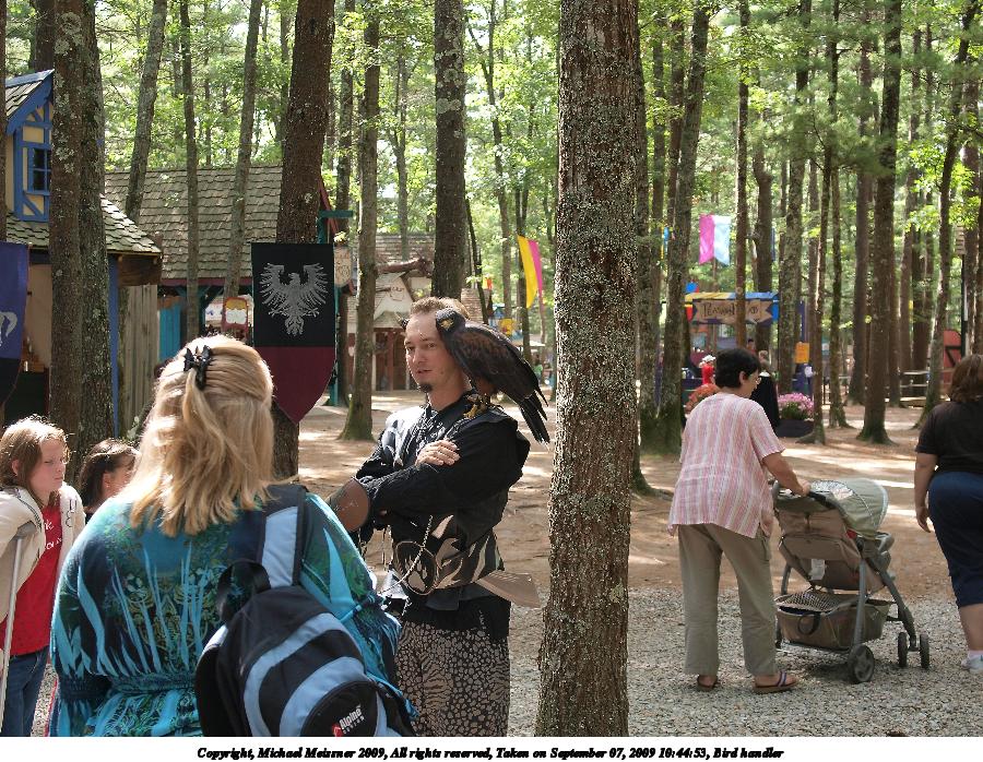 Picture #3: Bird handler Thumb: 450x338, 68,450 bytes (67K) Small: 900x698, 208,265 bytes (204K), (html file) Large: 3600x2700, 11,048,436 bytes (11M), (html file) Copyright, Michael Meissner 2009, All rights reserved Olympus E-3 camera with Olympus 14-54mm f/2.8-3.5 lens f/3.2, ISO 100, 1/80 sec, 25.0mm, auto mode, natural color, auto gradation, SHQ, matrix metering, IS1 (All Direction Shake IS), noise filter low 35mm equivalent focal length 50.0mm Programs used: default crop, gimp Taken by Michael Meissner on September 07, 2009 10:44:53 Last modified on January 30, 2011 at 18:08 |