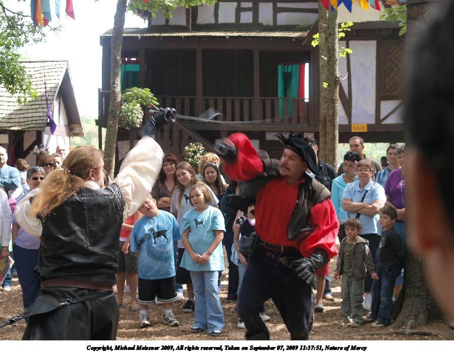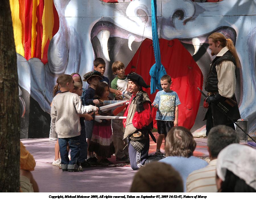 Picture #1: Nature of Mercy Thumb: 450x338, 64,760 bytes (64K) Small: 900x698, 199,911 bytes (196K), (html file) Large: 3600x2700, 10,979,528 bytes (11M), (html file) Copyright, Michael Meissner 2009, All rights reserved Olympus E-3 camera with Olympus 14-54mm f/2.8-3.5 lens f/3.2, ISO 100, 1/80 sec, 28.0mm, auto mode, natural color, auto gradation, SHQ, matrix metering, IS1 (All Direction Shake IS), noise filter low 35mm equivalent focal length 56.0mm Programs used: default crop, gimp Taken by Michael Meissner on September 07, 2009 11:32:42 Last modified on January 30, 2011 at 21:44 |