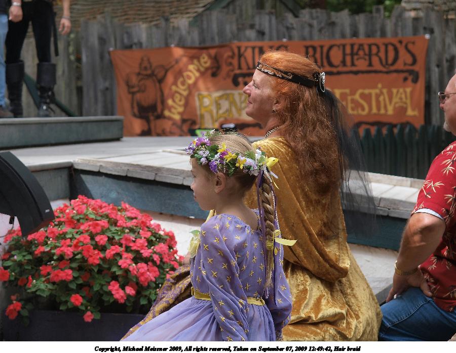 Picture #8: Hair braid Thumb: 450x338, 54,197 bytes (53K) Small: 900x698, 120,981 bytes (119K), (html file) Large: 3600x2700, 8,902,901 bytes (8.5M), (html file) Copyright, Michael Meissner 2009, All rights reserved Olympus E-3 camera with Olympus 14-54mm f/2.8-3.5 lens f/4.0, ISO 100, 1/160 sec, 54.0mm, auto mode, natural color, auto gradation, SHQ, matrix metering, IS1 (All Direction Shake IS), noise filter low 35mm equivalent focal length 108.0mm Programs used: default crop, gimp Taken by Michael Meissner on September 07, 2009 12:49:42 Last modified on January 30, 2011 at 18:52 |