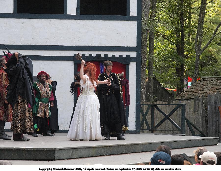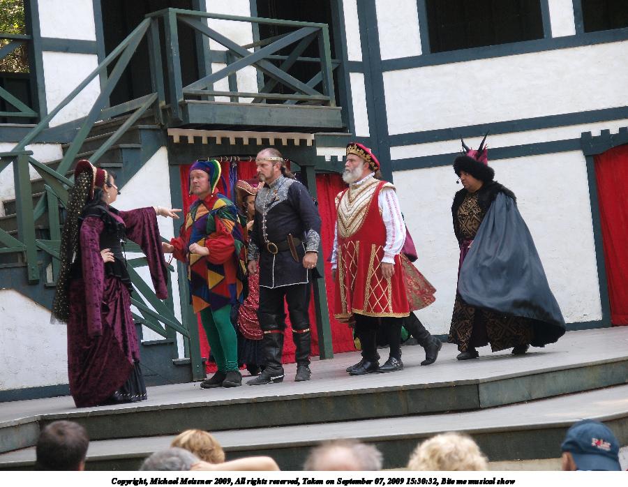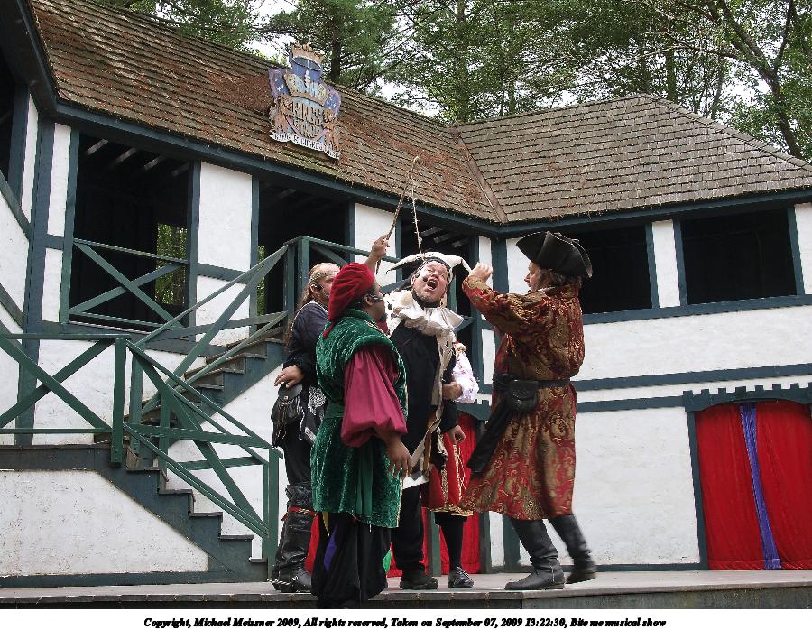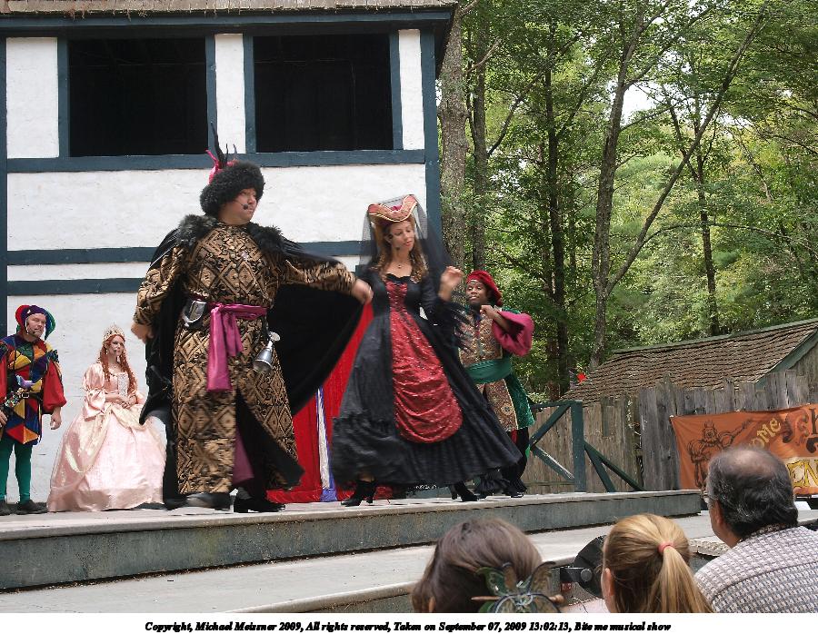 Picture #9: Bite me musical show #9 Thumb: 338x450, 42,949 bytes (42K) Small: 675x923, 117,793 bytes (116K), (html file) Large: 2700x3600, 9,073,715 bytes (8.7M), (html file) Copyright, Michael Meissner 2009, All rights reserved Olympus E-3 camera with Olympus 14-54mm f/2.8-3.5 lens f/5.6, ISO 100, 1/160 sec, 50.0mm, aperture priority, natural color, auto gradation, SHQ, matrix metering, IS1 (All Direction Shake IS), noise filter low 35mm equivalent focal length 100.0mm Programs used: default crop, gimp Taken by Michael Meissner on September 07, 2009 13:22:02 Last modified on January 30, 2011 at 21:59 |