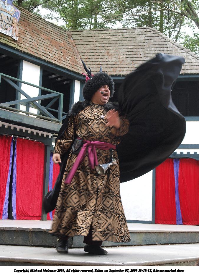 Picture #12: Bite me musical show #12 Thumb: 450x338, 47,255 bytes (47K) Small: 900x698, 122,504 bytes (120K), (html file) Large: 3600x2700, 9,416,837 bytes (9.0M), (html file) Copyright, Michael Meissner 2009, All rights reserved Olympus E-3 camera with Olympus 14-54mm f/2.8-3.5 lens f/3.4, ISO 100, 1/100 sec, 49.0mm, auto mode, natural color, auto gradation, SHQ, matrix metering, IS1 (All Direction Shake IS), noise filter low 35mm equivalent focal length 98.0mm Programs used: default crop, gimp Taken by Michael Meissner on September 07, 2009 15:34:04 Last modified on January 30, 2011 at 22:27 |