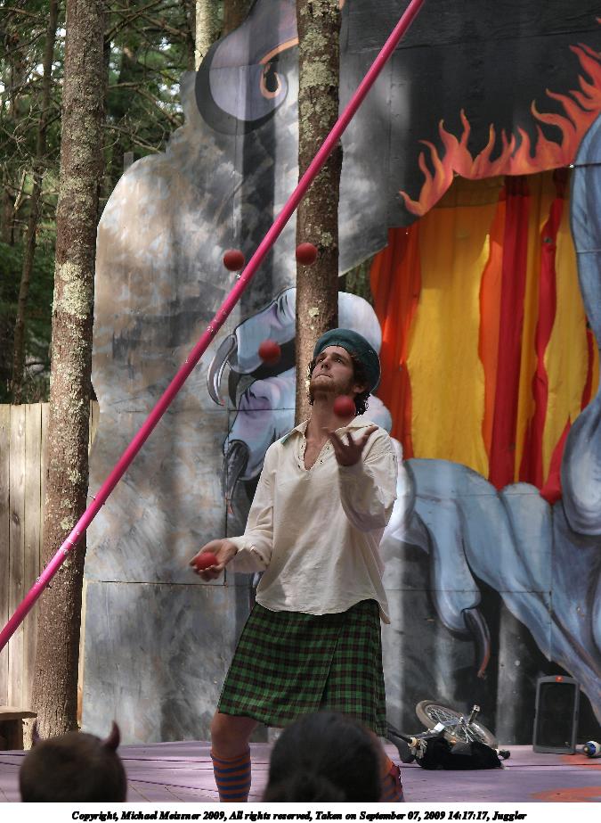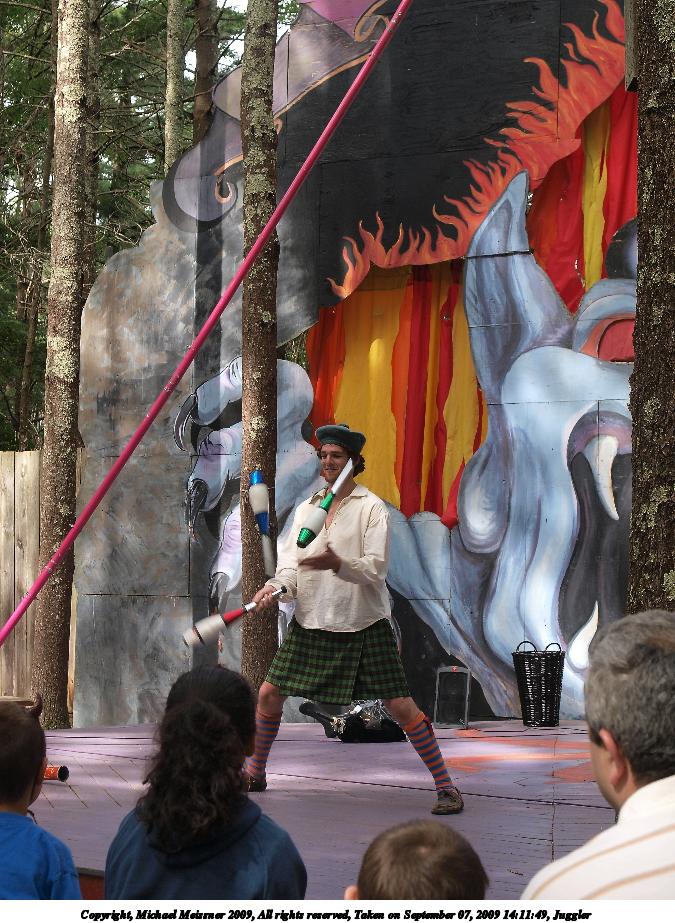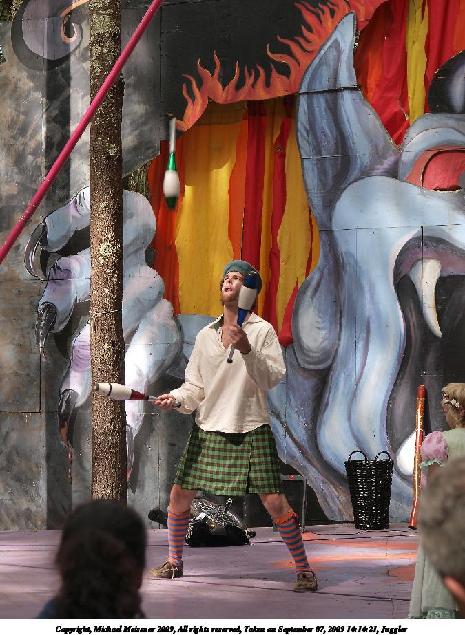 Picture #10: Juggler Thumb: 338x450, 56,446 bytes (56K) Small: 675x923, 155,525 bytes (152K), (html file) Large: 2700x3600, 9,389,380 bytes (9.0M), (html file) Copyright, Michael Meissner 2009, All rights reserved Olympus E-3 camera with Olympus 14-54mm f/2.8-3.5 lens f/5.6, ISO 125, 1/60 sec, 32.0mm, aperture priority, natural color, auto gradation, SHQ, matrix metering, IS1 (All Direction Shake IS), noise filter low 35mm equivalent focal length 64.0mm Programs used: default crop, gimp Taken by Michael Meissner on September 07, 2009 14:11:49 Last modified on January 30, 2011 at 22:06 |