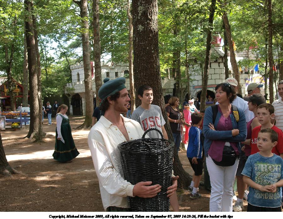 Picture #16: Fill the basket with tips Thumb: 450x338, 68,331 bytes (67K) Small: 900x698, 201,708 bytes (197K), (html file) Large: 3600x2700, 10,663,513 bytes (11M), (html file) Copyright, Michael Meissner 2009, All rights reserved Olympus E-3 camera with Olympus 14-54mm f/2.8-3.5 lens f/3.5, ISO 100, 1/100 sec, 22.0mm, auto mode, natural color, auto gradation, SHQ, matrix metering, IS1 (All Direction Shake IS), noise filter low 35mm equivalent focal length 44.0mm Programs used: default crop, gimp Taken by Michael Meissner on September 07, 2009 14:29:26 Last modified on January 30, 2011 at 22:12 |