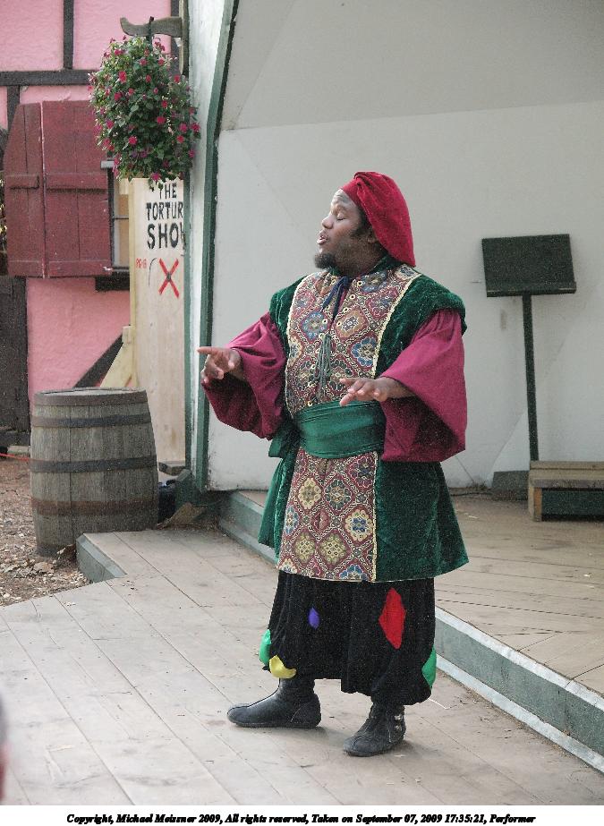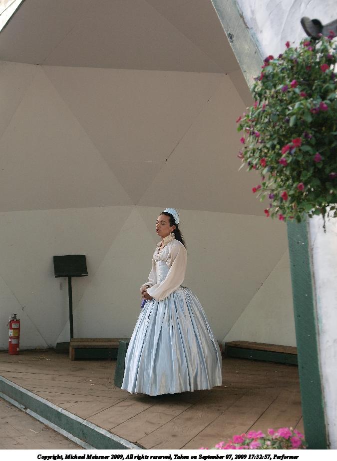 Picture #25: Performer #2 Thumb: 450x338, 58,999 bytes (58K) Small: 900x698, 149,260 bytes (146K), (html file) Large: 3600x2700, 9,439,388 bytes (9.0M), (html file) Copyright, Michael Meissner 2009, All rights reserved Olympus E-3 camera with Olympus 14-54mm f/2.8-3.5 lens f/3.2, ISO 200, 1/60 sec, 35.0mm, auto mode, natural color, auto gradation, SHQ, matrix metering, IS1 (All Direction Shake IS), noise filter low 35mm equivalent focal length 70.0mm Programs used: default crop, gimp Taken by Michael Meissner on September 07, 2009 16:29:04 Last modified on January 30, 2011 at 22:40 |