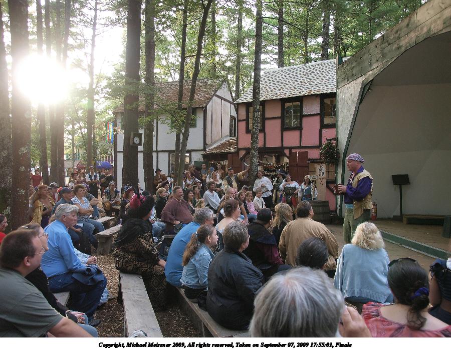 Picture #8: Finale #2 Thumb: 450x338, 56,625 bytes (56K) Small: 900x698, 174,533 bytes (171K), (html file) Large: 3600x2700, 10,372,941 bytes (9.9M), (html file) Copyright, Michael Meissner 2009, All rights reserved Olympus E-3 camera with Olympus 14-54mm f/2.8-3.5 lens f/2.8, ISO 200, 1/60 sec, 14.0mm, auto mode, natural color, auto gradation, SHQ, center weight metering, IS1 (All Direction Shake IS), noise filter low 35mm equivalent focal length 28.0mm Programs used: default crop, gimp Taken by Michael Meissner on September 07, 2009 17:55:01 Last modified on January 31, 2011 at 22:25 |
